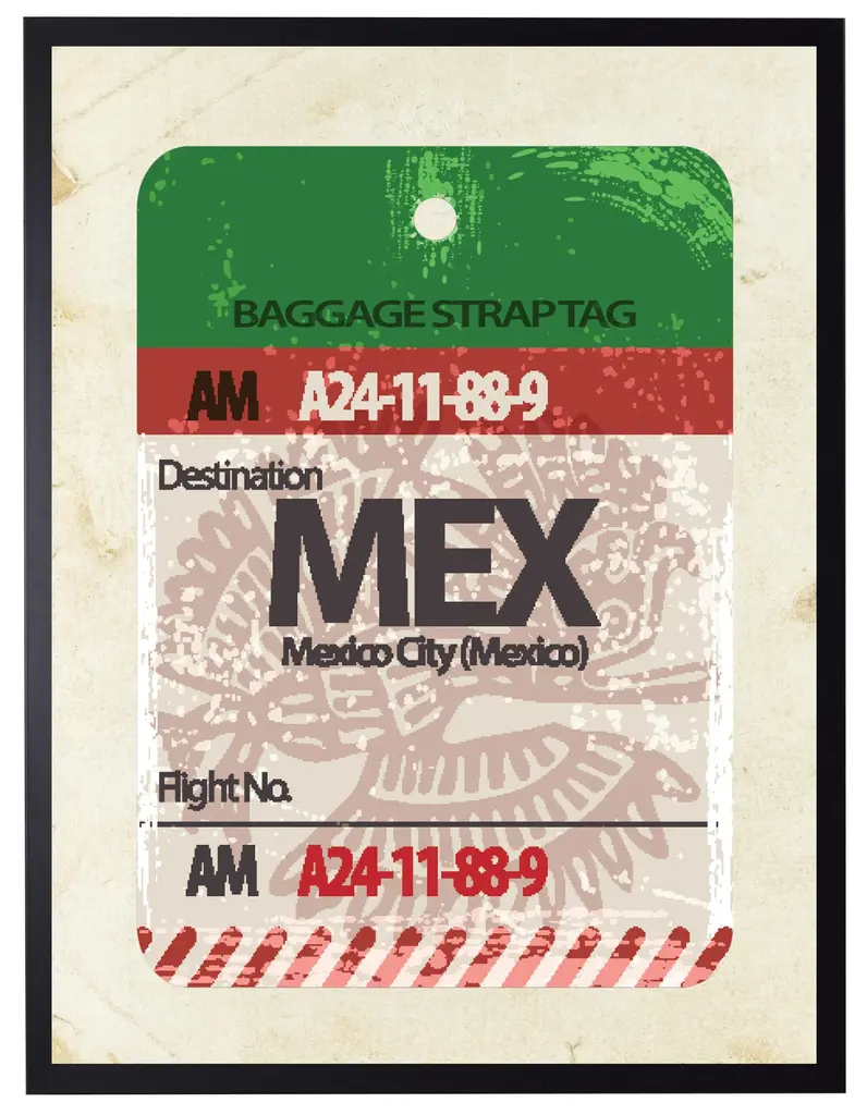 Art Print: Mexico Travel Ticket Print In Black Shadowbox Dimensions: 13" x 17"