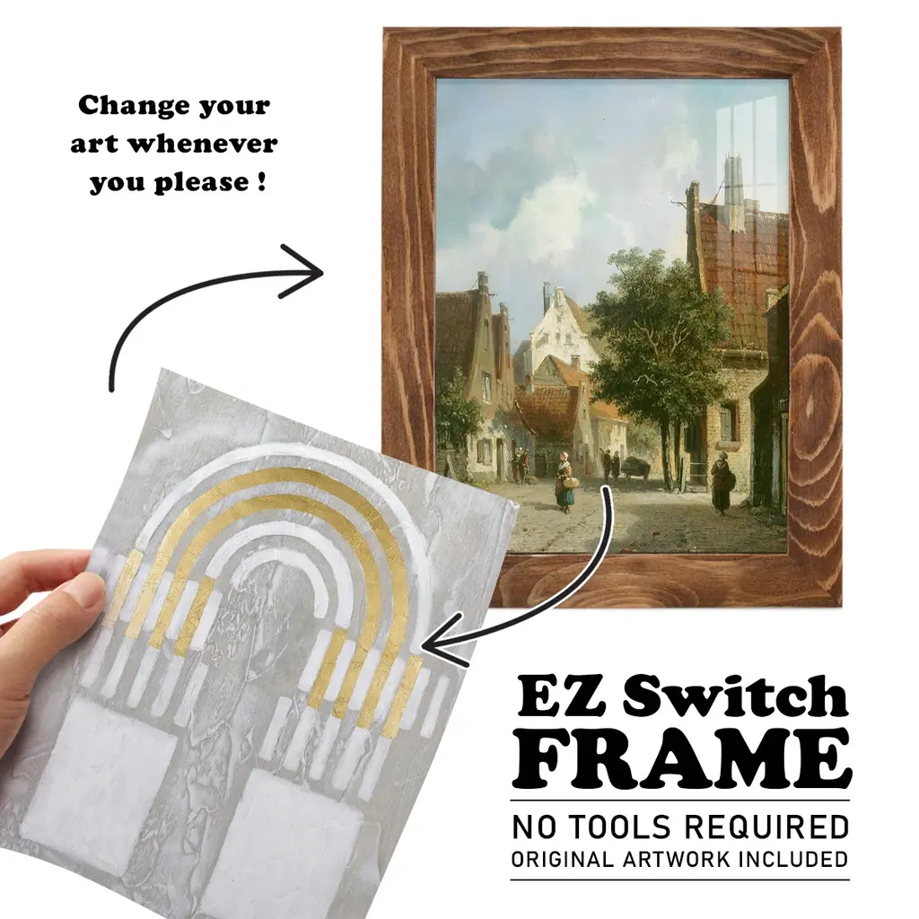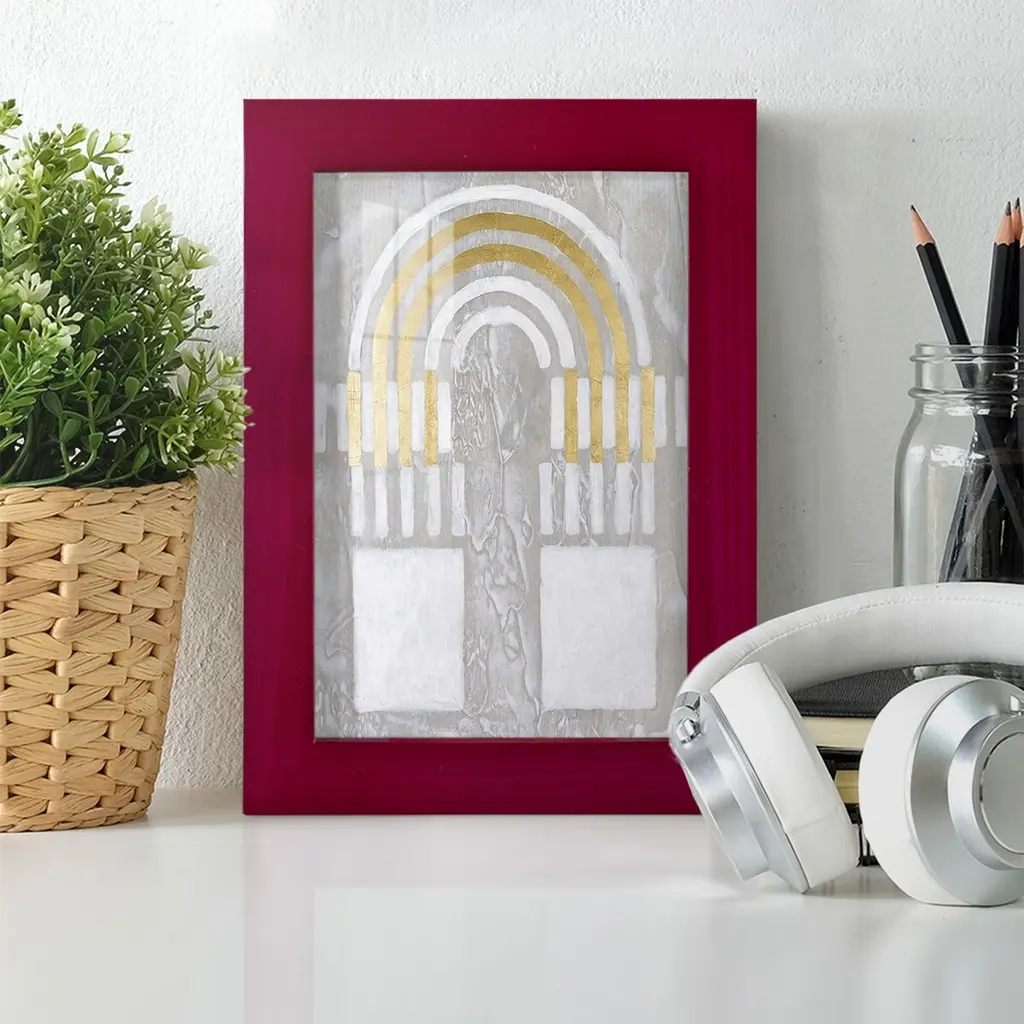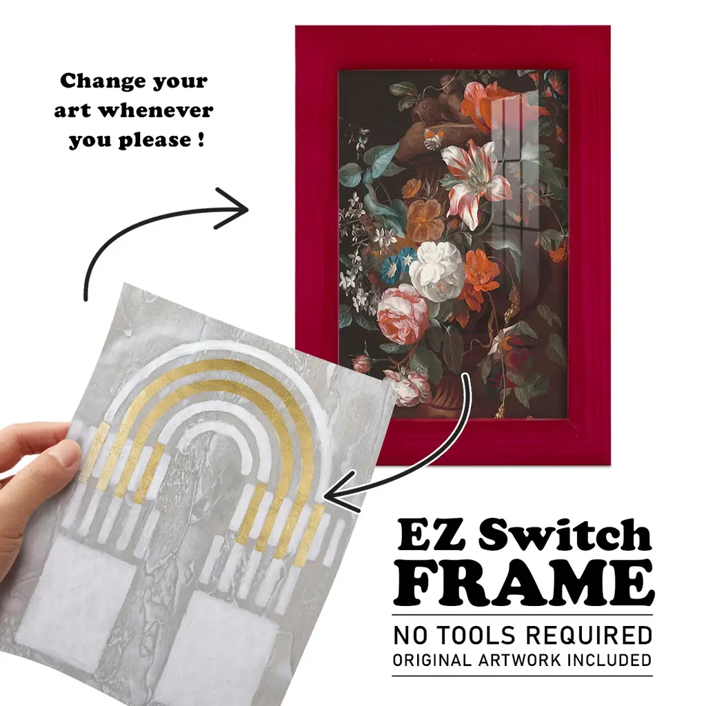 Mezzanine I -EZ SWITCH Framed Print w/glass-Cherry Red A delightful, framed print. Featuring a solid wood frame with real wood glass. This premium print is giclee quality. In addition, every frame features a removable back and table top stand. This allows you to change your art in the future or to just stand the art on a table for a new look. We are sure you'll enjoy our new series of EZ SWITCH Framed Art. Solid Wood Frame Real Glass Removable / Replaceable Art Built in Tabletop Stand Sizes range from 4x6 up to 12x15 - buy just one or pair them up as sets as you see fit.