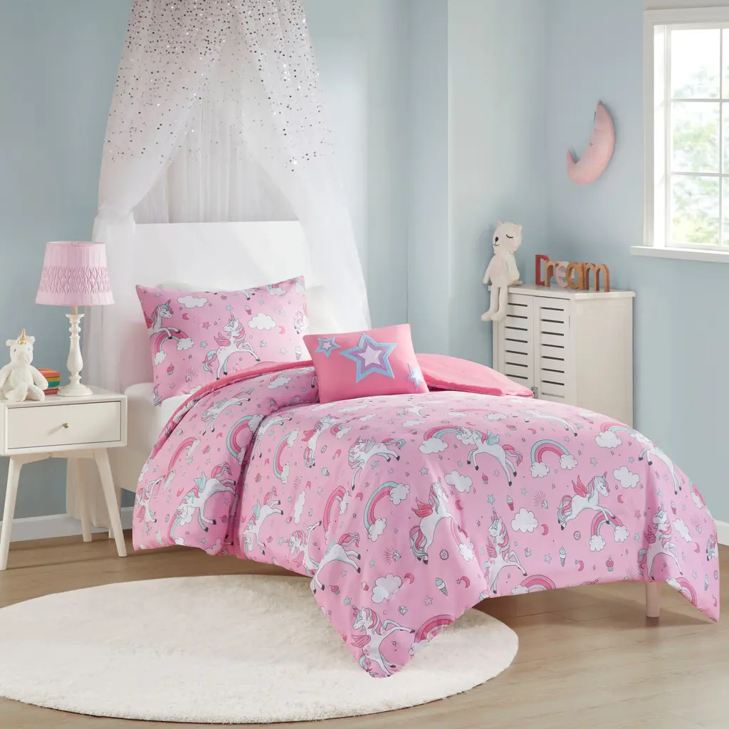Mi Zone Kids Kristie 100% Polyester Printed Comforter Set - Pink - Twin