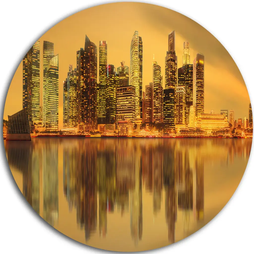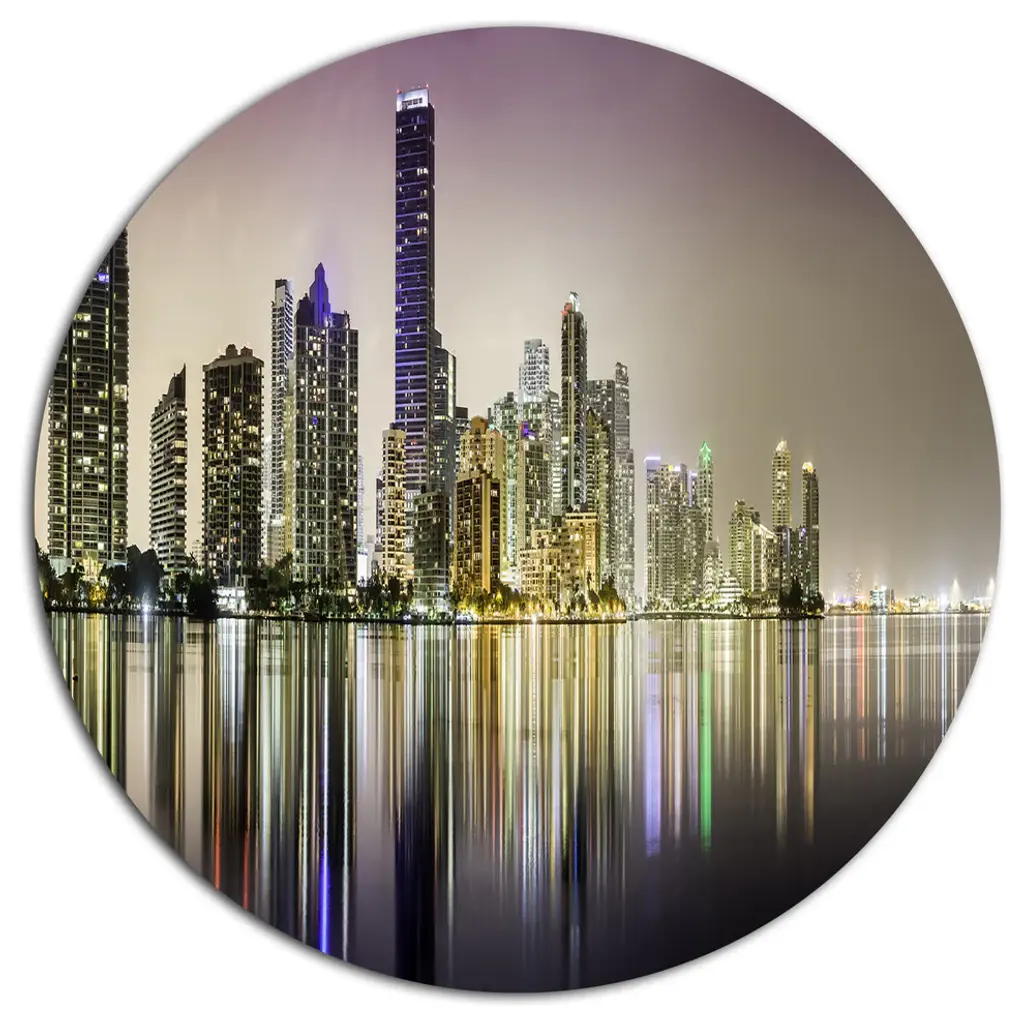 Bring Contemporary Abstraction to your home with this large Circle Metal wall art. This Miami Downtown Night Panorama Metal Artwork makes it the focal point of any room or office. - White Gloss Coating ensures colors are extra vibrant with light reflection.- Aluminum grade Sheet Metal with 1 inch mounting frame on the back giving the illusion that the artwork is floating on the wall..- Mounting Brackets are included along with instructions.- High Quality Digital images are created directly into a glossy aluminum panel producing a stunning and captivating print into the glossy finish of the metal.- Water, Fire and Scratch resistant HD Aluminum panels.- Looks better than any photo paper and guaranteed to last at least 20 years- Easy to clean with a microfiber cloth. Colors are far superior to regular Canvas Art. - Easy to Hang