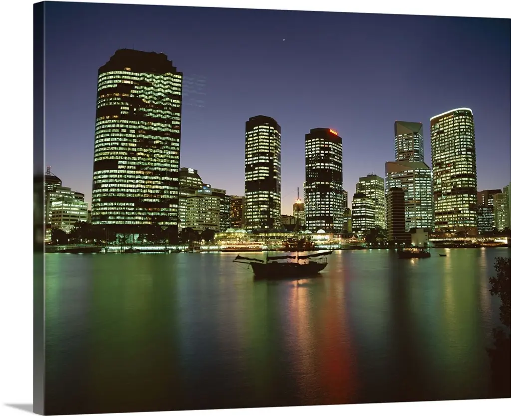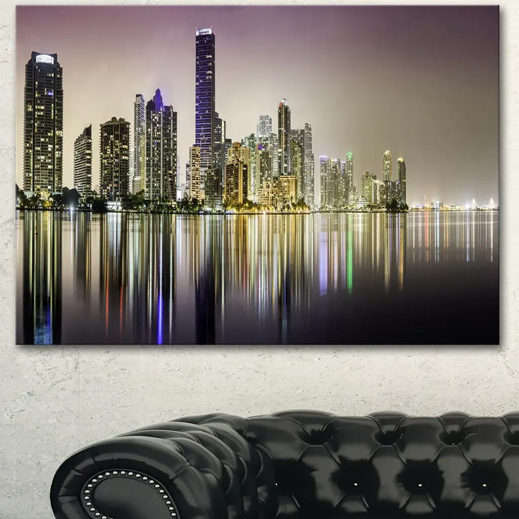Miami Downtown Night Panorama, Extra Large Canvas Art Print, 60"x28"