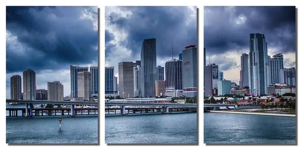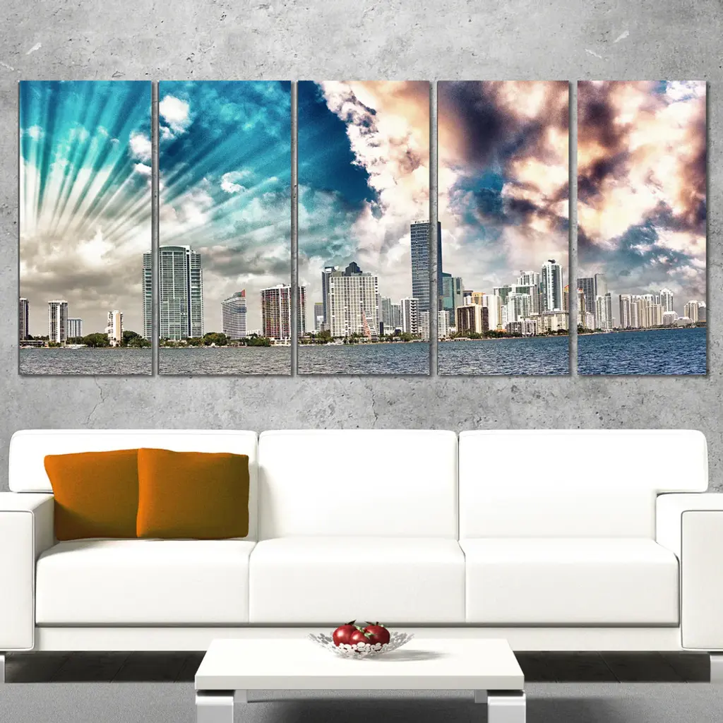"Miami Skyline With Clouds" Canvas Print, 5 Panels