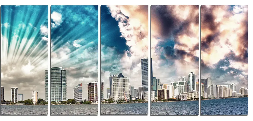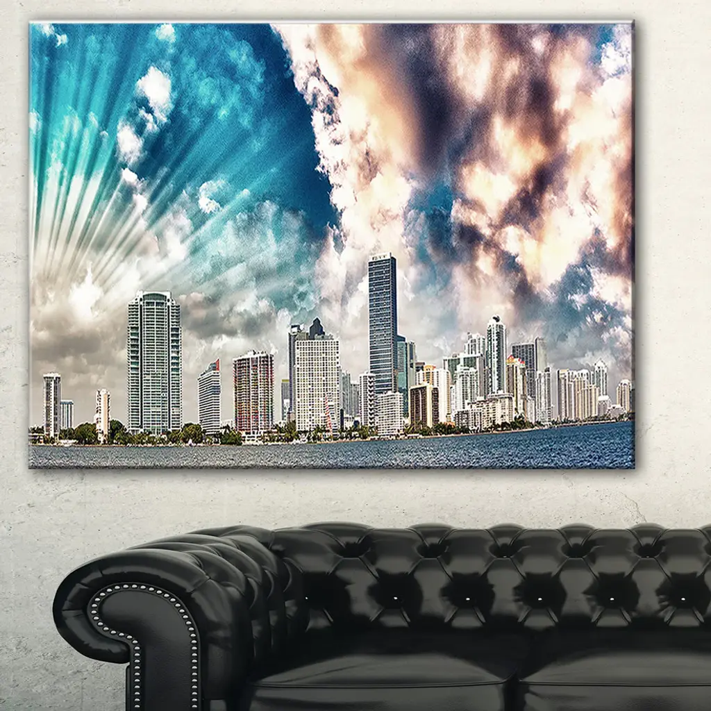 The Miami Skyline with Clouds canvas art print is sure to make an impression on anyone who sees it. This artwork is gallery wrapped around a 1-inch solid wood frame and arrives carefully packaged and entirely ready to hang on the wall. Design Art only uses the highest resolution and pigments to ensure a crisp colorful print that is never faded or pixelated. This artwork is sure to be a conversation starter in any home or office.