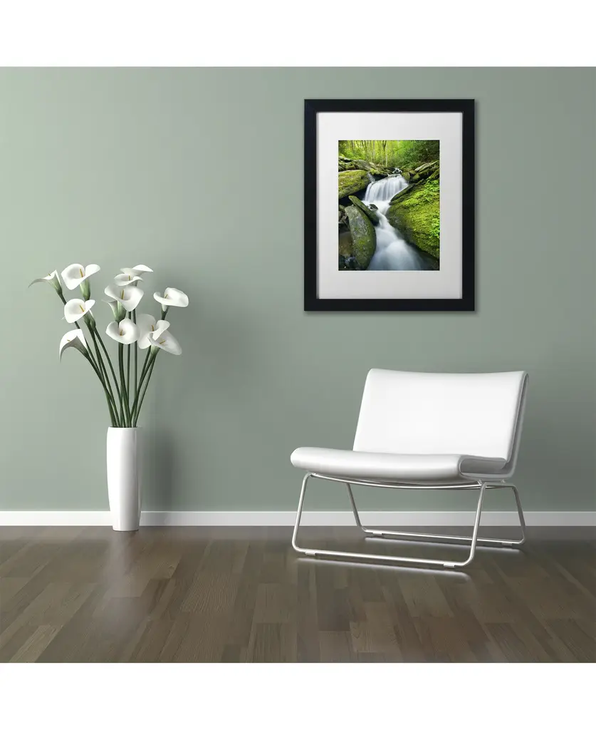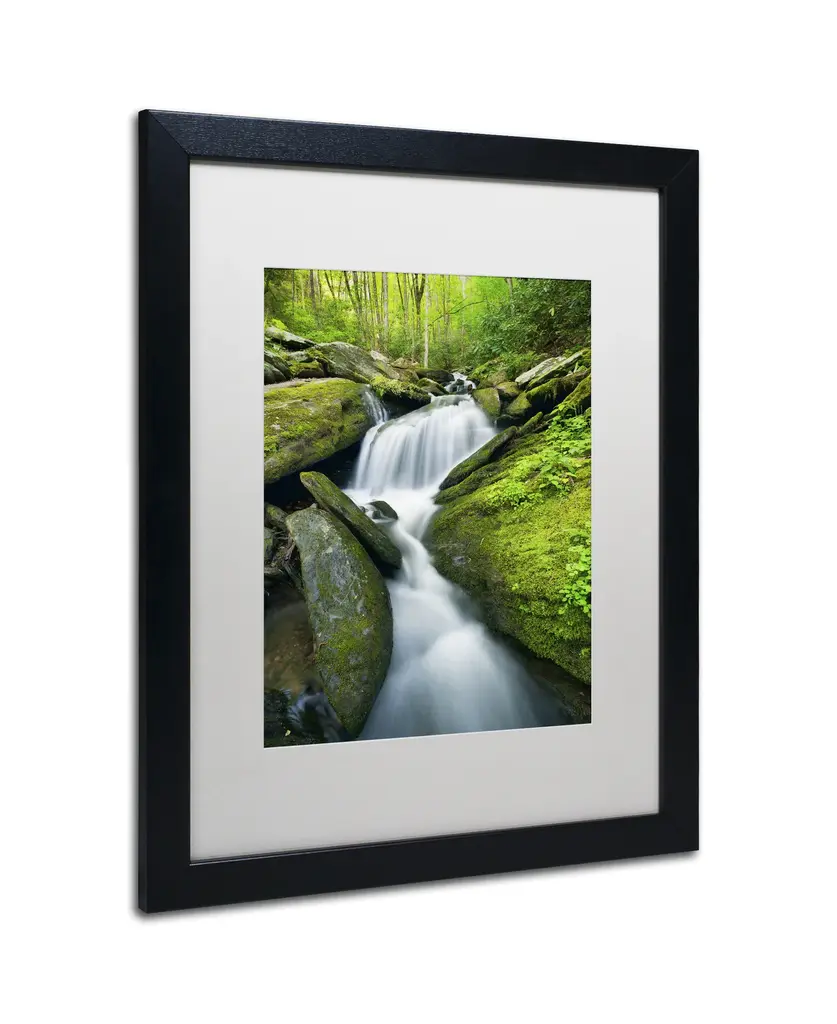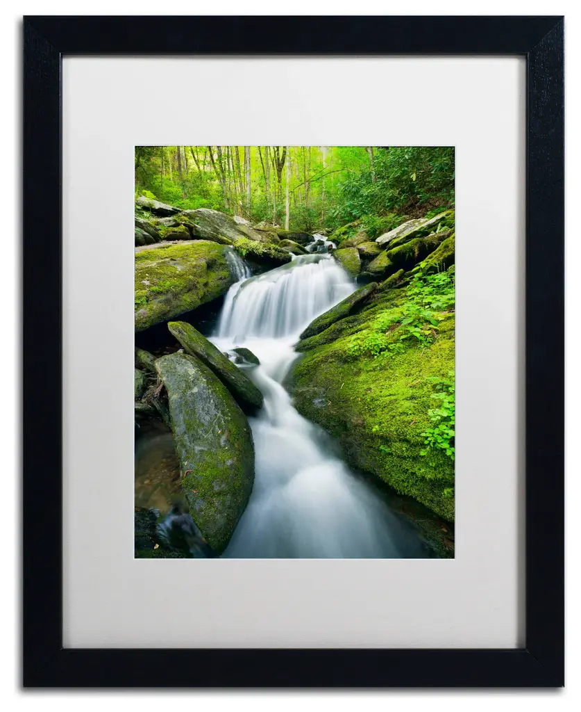 Michael Blanchette 'Cascade Mossy Rocks' Art, Black Frame, White Mat, 20x16