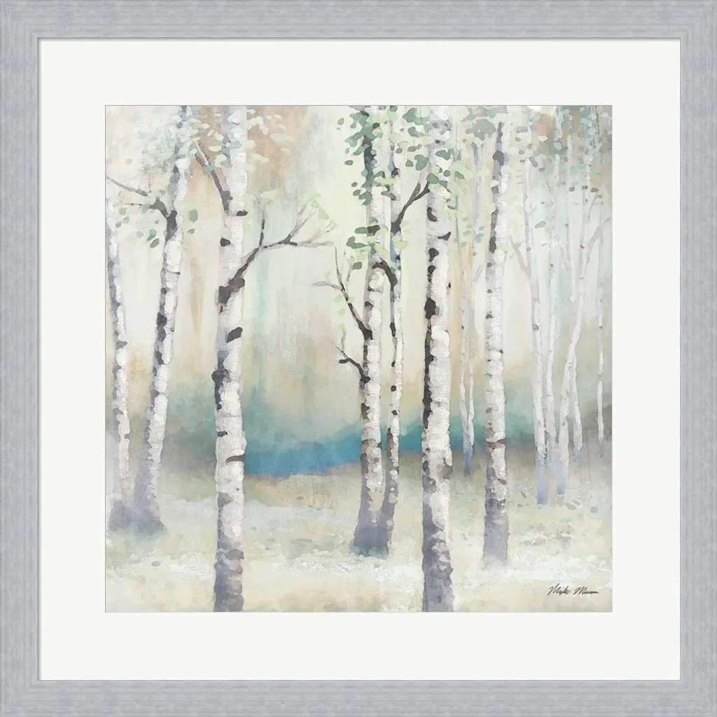 Watercolor December Birch II by Michael Marcon is a high quality piece of framed artwork. The finished size of this piece is 19.5" X 19.5". It has a Slim Platinum Silver frame, is single matted and finished with high quality Glass.