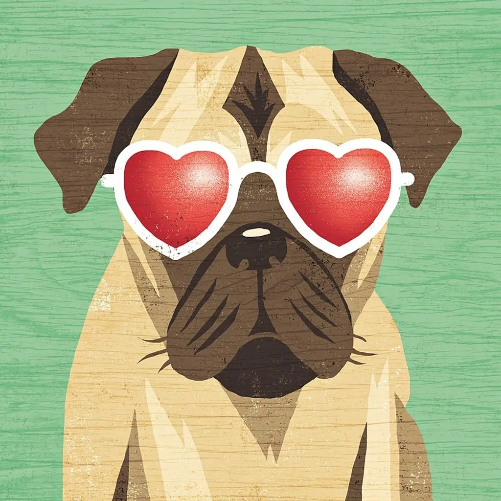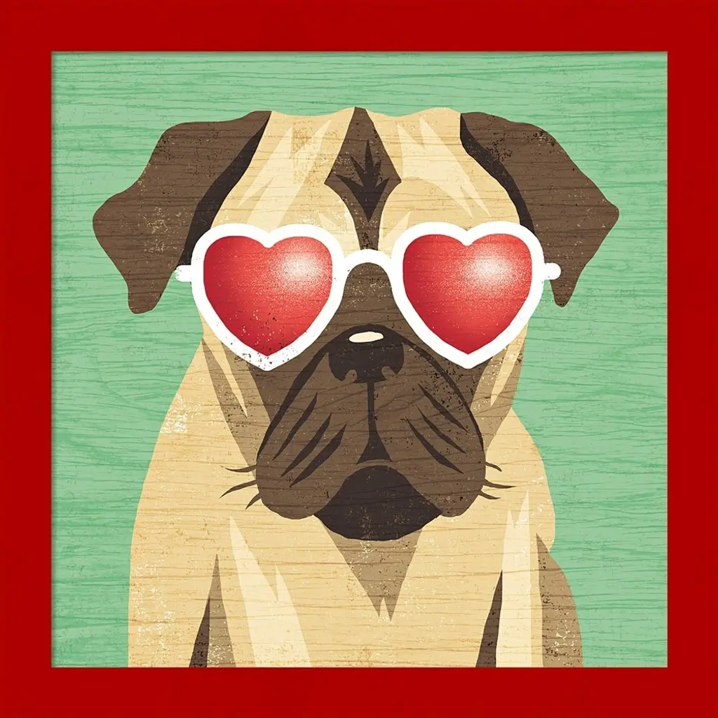 Beach Bums Pug I by Michael Mullan is a high quality piece of framed artwork. The finished size of this piece is 14" X 14". It has a Thin Red with Satin Finish frame and is finished with high quality Acrylic Plexiglass. 100% Satisfaction Guaranteed.