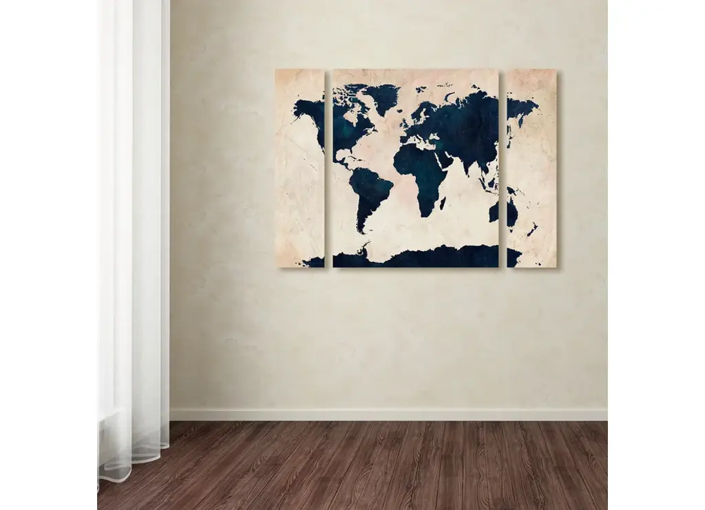 Michael Tompsett 'World Map Navy' Multi Panel Art Set, 41"x30"