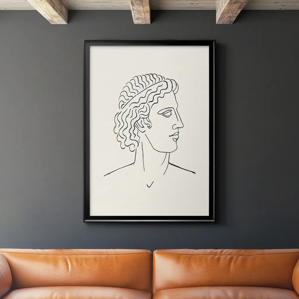 A timeless beauty, this artwork features David's profile sketched framed in white matte and a gold frame. Style in an entry, bedroom, or living room for a sophisticated addition.