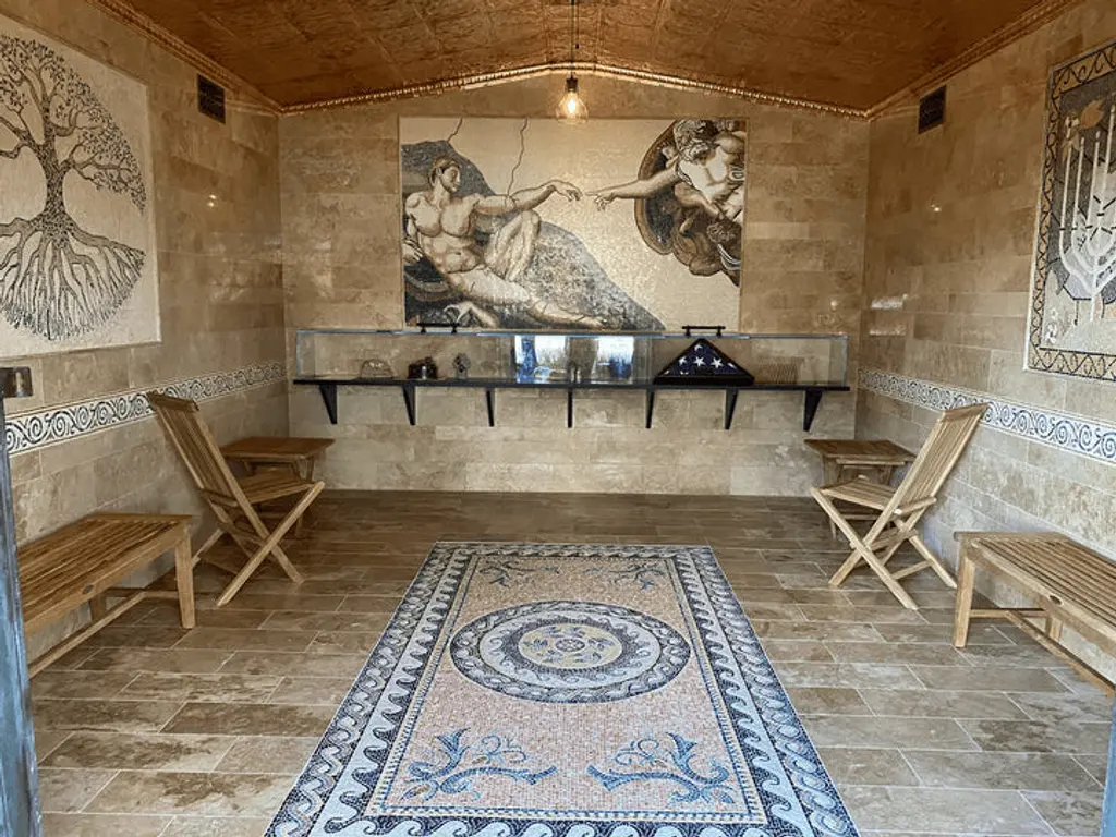 Introducing our exquisite "Michelangelo Creation of Adam" Mosaic Art Reproduction—a stunning tribute to one of the most celebrated masterpieces in art history. This unique mosaic captures the essence of Michelangelo's iconic fresco from the Sistine Chapel ceiling, masterfully depicting the divine connection between God and man. Carefully handcrafted by skilled artisans, this piece is crafted from premium quality natural stone, ensuring durability and a timeless aesthetic that elevates any space. Unlike typical paintings that may fade or wear with time, this luxury stone mosaic is designed to endure, making it a valuable investment for your home or office. The mosaic features a vibrant color palette enriched with exotic materials, including the rare Blue Bahia. This exotic Brazilian blue stone offers deep cerulean hues and oceanic brilliance, adding a captivating tropical blue luxury that radiates cool, silky tones. Complementing this is the luminous Brown Quartz, with its radiant, crystalline shimmer and jewel-like, prismatic translucence that scintillates with every glance. These exquisite stones enhance the striking details and dynamic energy of the original painting, bringing a dazzling presence to your environment. Perfect for living rooms, offices, or galleries, this handcrafted mosaic not only serves as a conversation starter but also creates a spiritual atmosphere that inspires creativity and introspection. It makes an ideal gift for art aficionados or anyone who appreciates the power and elegance of classical masterpieces. Choosing our "Michelangelo Creation of Adam" Mosaic Art Reproduction means embracing an artistic legacy crafted from luxury stone and exotic natural materials. Add a touch of elegance and history to your walls today, and enjoy the radiant beauty that only a true handcrafted mosaic can provide. Make your purchase now and bring home a captivating piece of history.