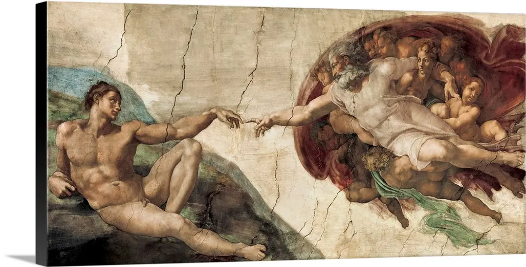 Michelangelo Creation Of Adam Mosaic Art Reproduction | Luxury Handcrafted - 195cm X 117cm (77" X 46") / With Frame