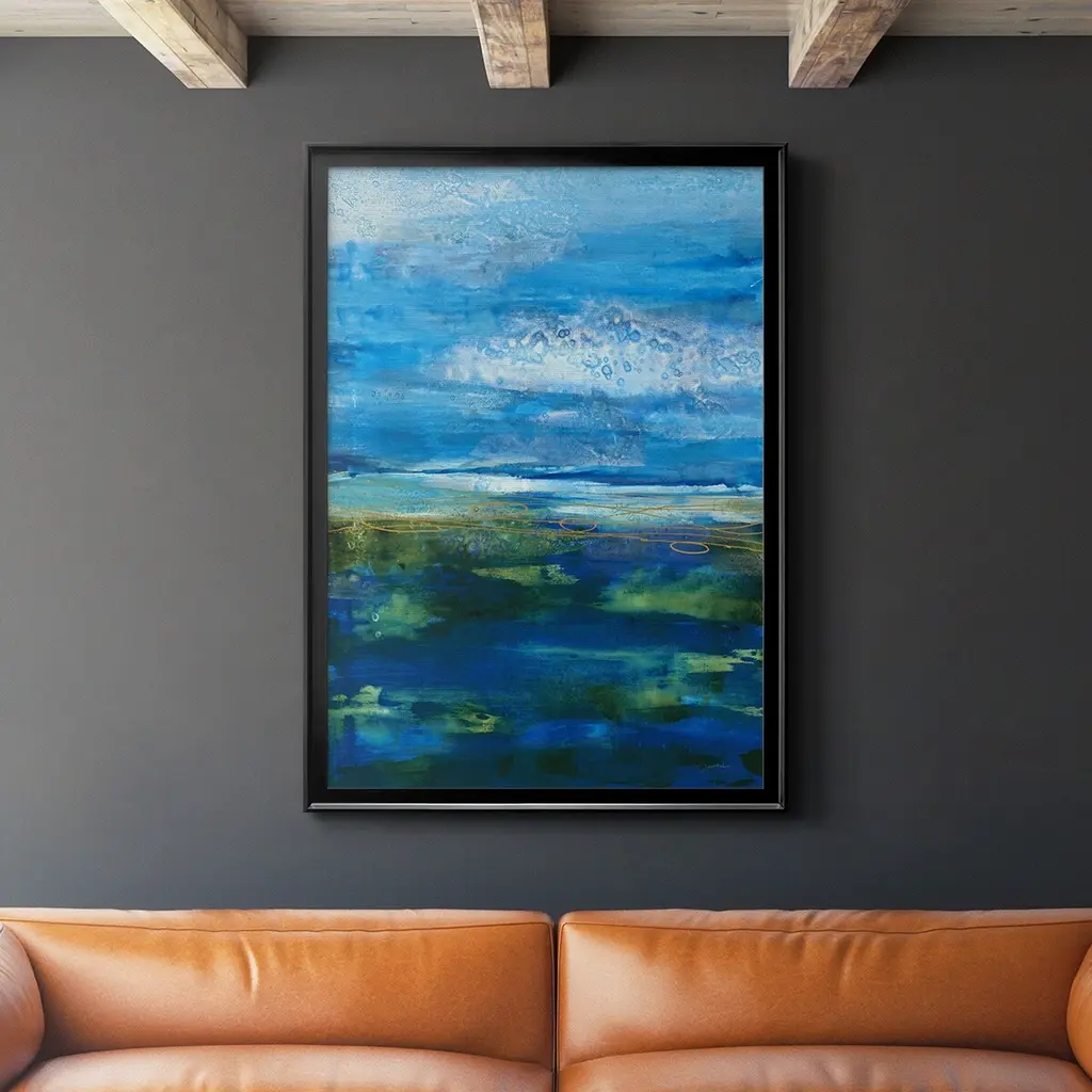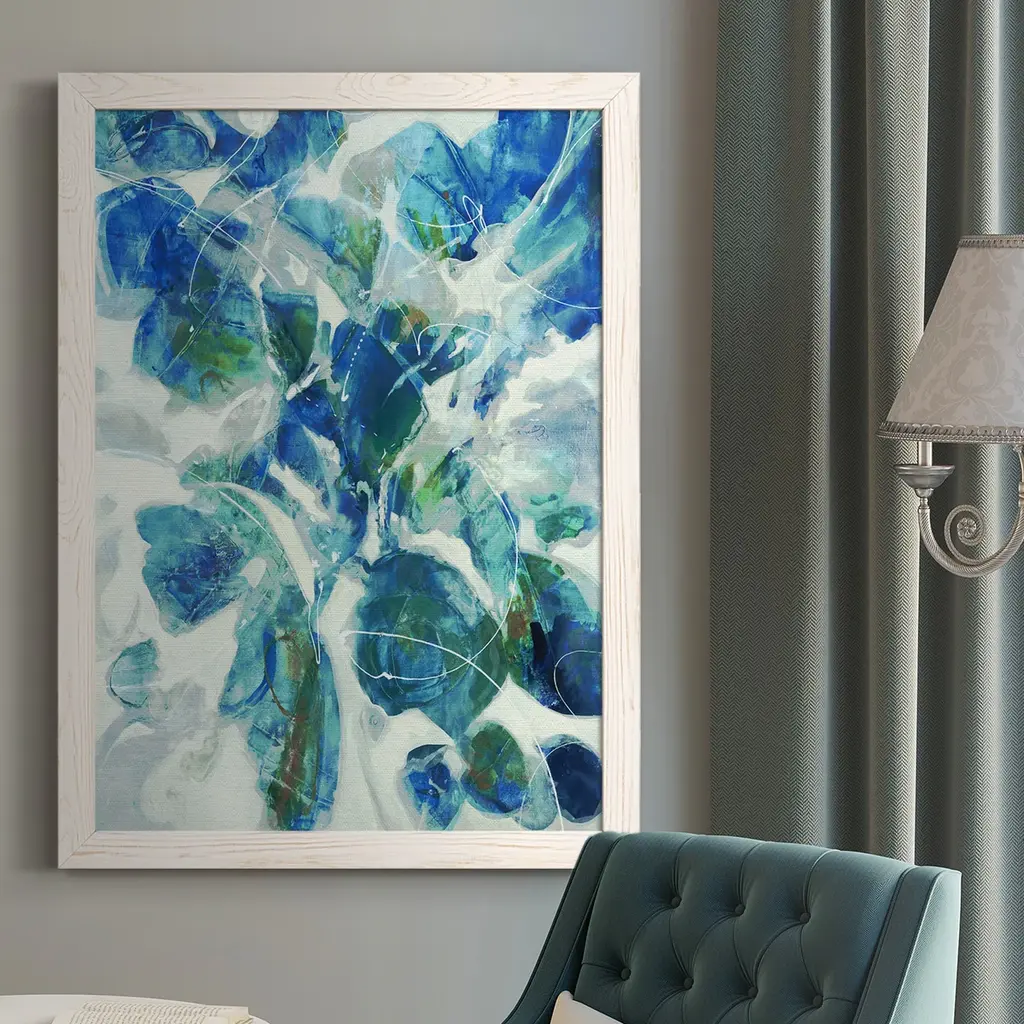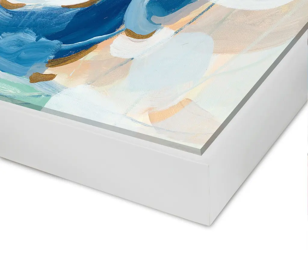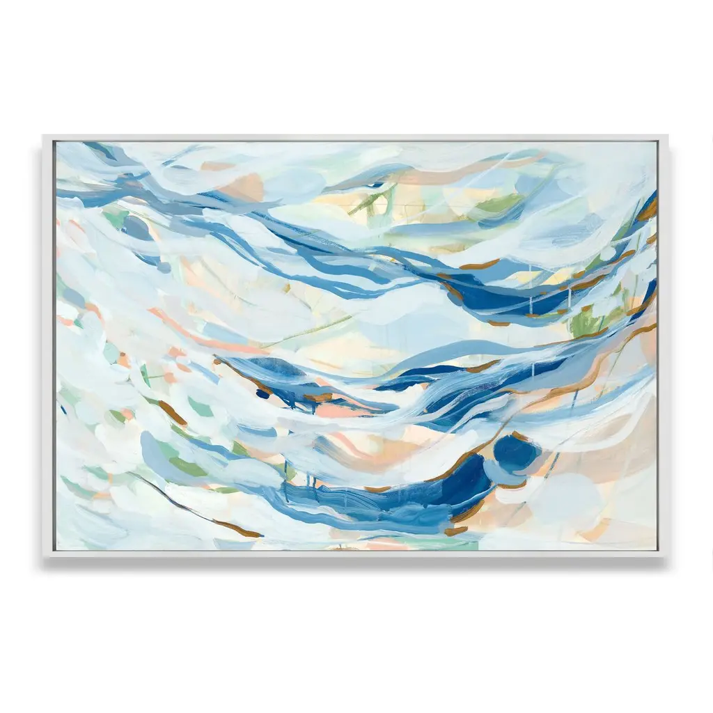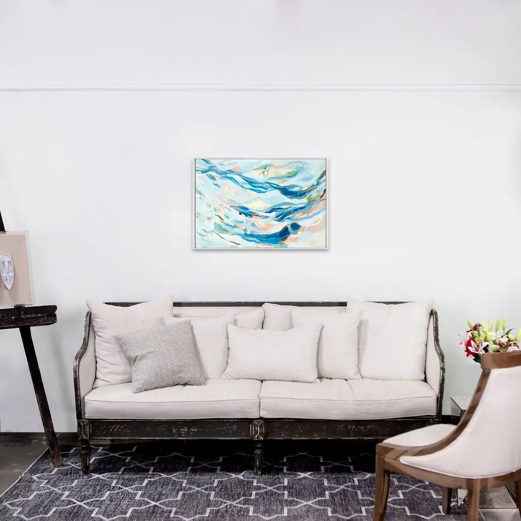 Seen first at One Kings Lane: Faithfully reproduced here on canvas, this serene work from Michelle Armas displays fluid brushstrokes and cheerful pops of blue. This piece is displayed in a pine frame and arrives ready to hang.Michelle Armas paints in acrylic and oil in her studio in Decatur, Georgia. She creates abstractions, both large-format and delicately scaled, and also works in portraiture. Armas has a degree in graphic design from the Portfolio Center in Atlanta.
