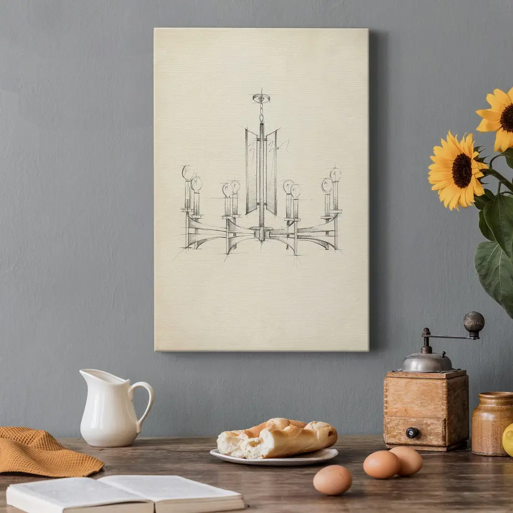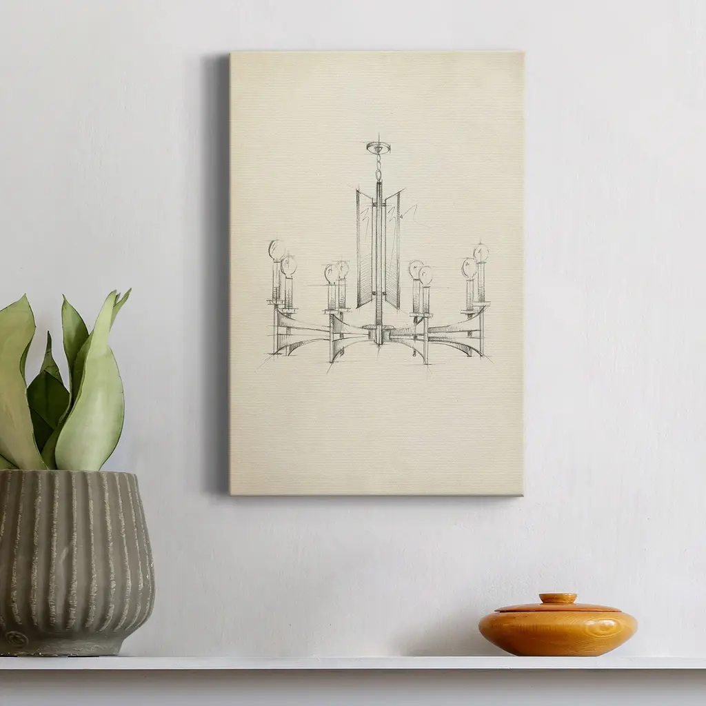Mid Century Chandelier IV Premium Gallery Wrapped Canvas - Ready to Hang A premium hand stretched gallery wrapped canvas print created to last. Featuring a beveled a solid wood stretcher bar, each piece comes ready to hand 5 SIZES AVAILABLE 8''X12'' - Overall Size 16'X20'' - Overall Size 24''x32'' - Overall Size 30''x40'' - Overall Size 36''x48'' - Overall Size Each piece is made to order. Built to Last Each piece comes ready to hang Solid wood stretcher Fade and Water resistant Made domestically