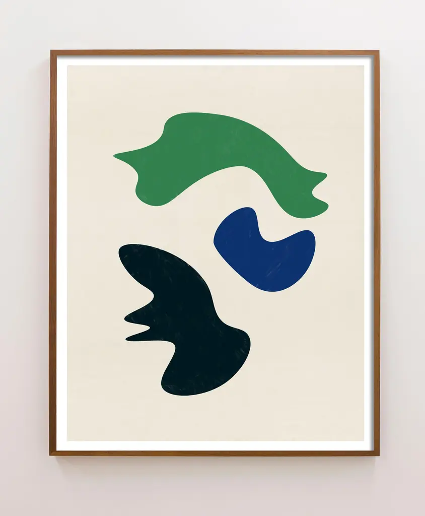 This series of Modern Abstract prints uses biomorphic shapes in primary colors that perfectly accompany a mid-century interior. Unframed print on 100% cotton archival fine art paper.