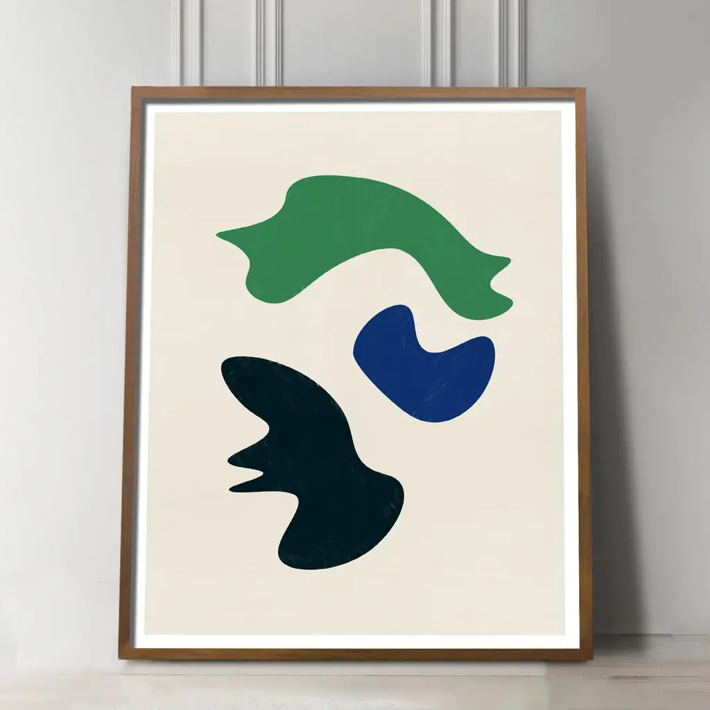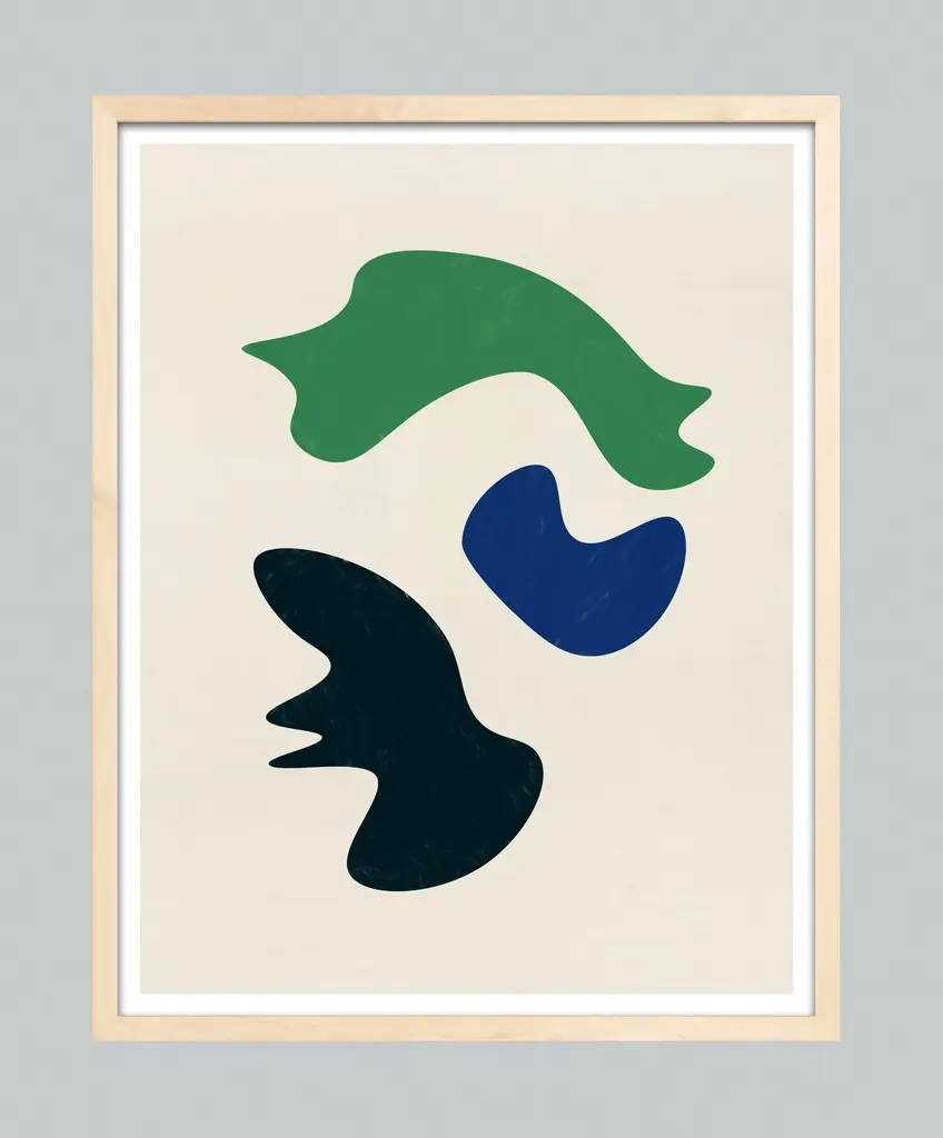 This series of Modern Abstract prints uses biomorphic shapes in primary colors that perfectly accompany a mid-century interior. Unframed print on 100% cotton archival fine art paper.