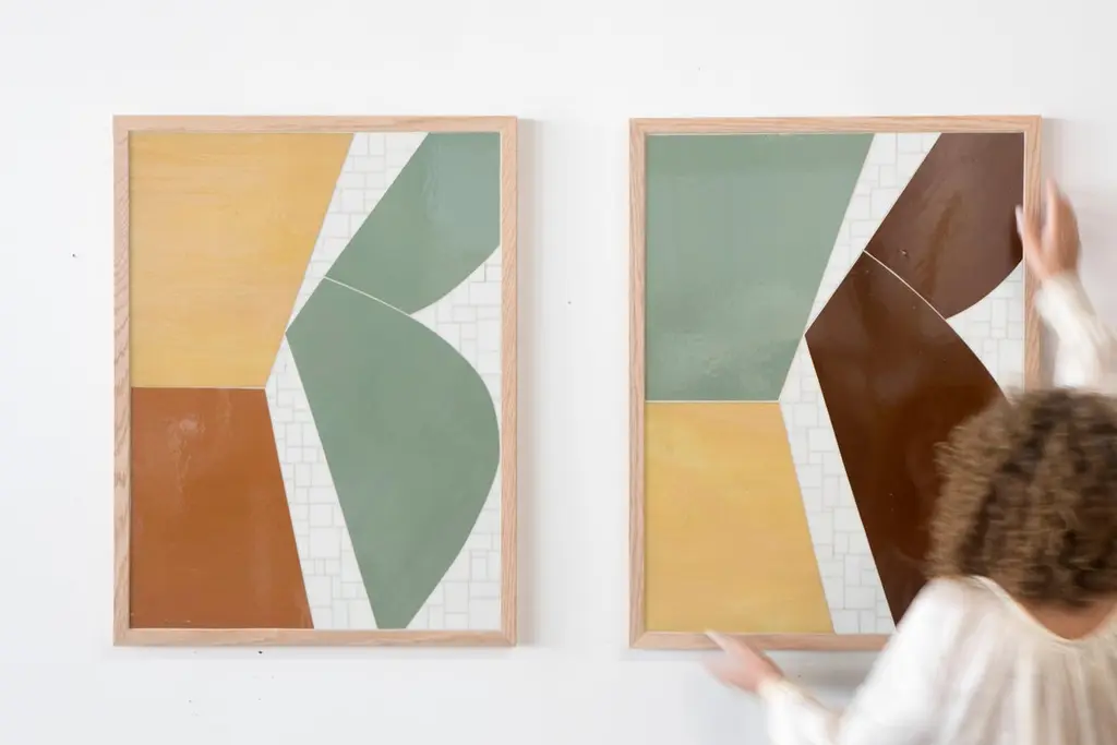 This mid century decorative glass wall art is hand cut and made by hand by skillful artisans in Brooklyn, and framed in natural solid oak.Resistant to fading and aging. Limited edition of 10 pieces.Custom designs and large sizes available.