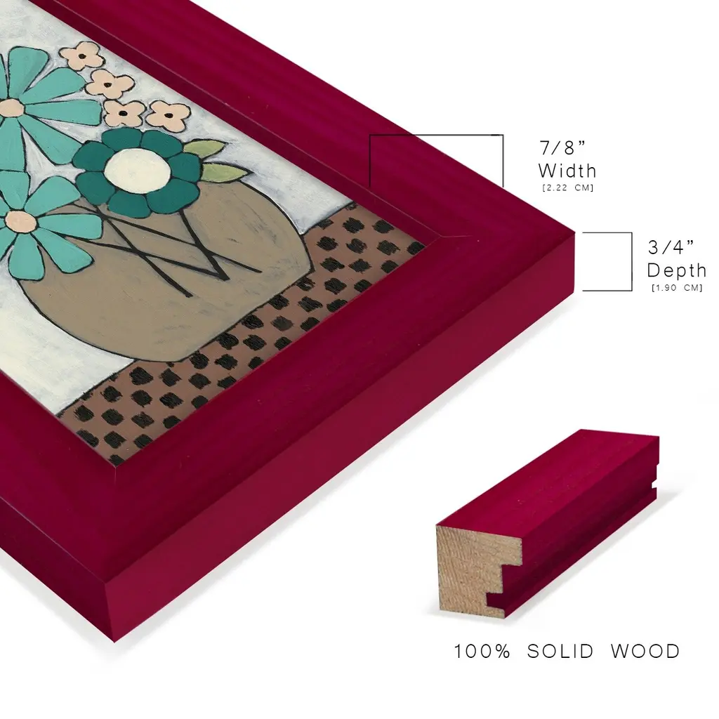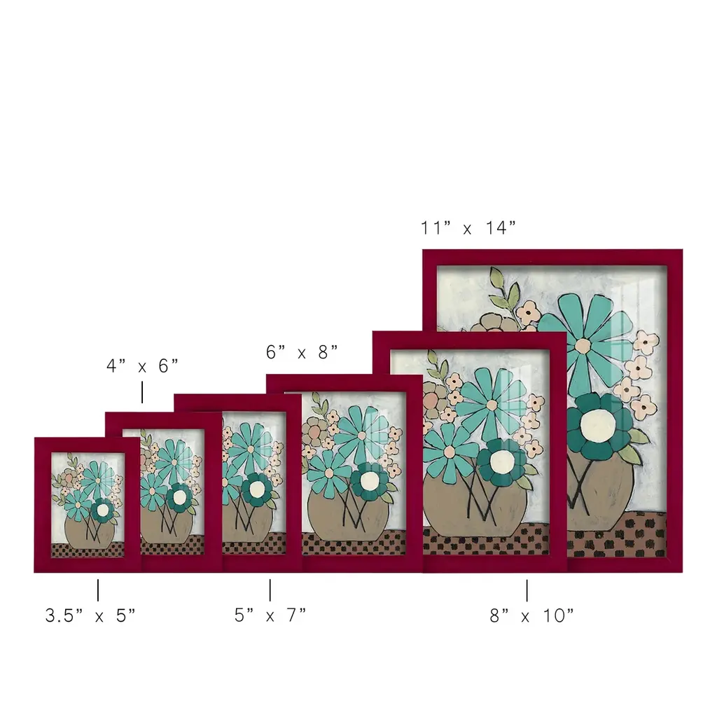 Mid Summer Bouquet II -EZ SWITCH Framed Print w/glass-Cherry Red A delightful, framed print. Featuring a solid wood frame with real wood glass. This premium print is giclee quality. In addition, every frame features a removable back and table top stand. This allows you to change your art in the future or to just stand the art on a table for a new look. We are sure you'll enjoy our new series of EZ SWITCH Framed Art. Solid Wood Frame Real Glass Removable / Replaceable Art Built in Tabletop Stand Sizes range from 4x6 up to 12x15 - buy just one or pair them up as sets as you see fit.