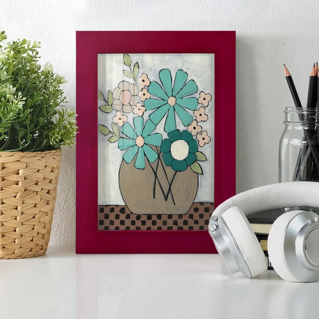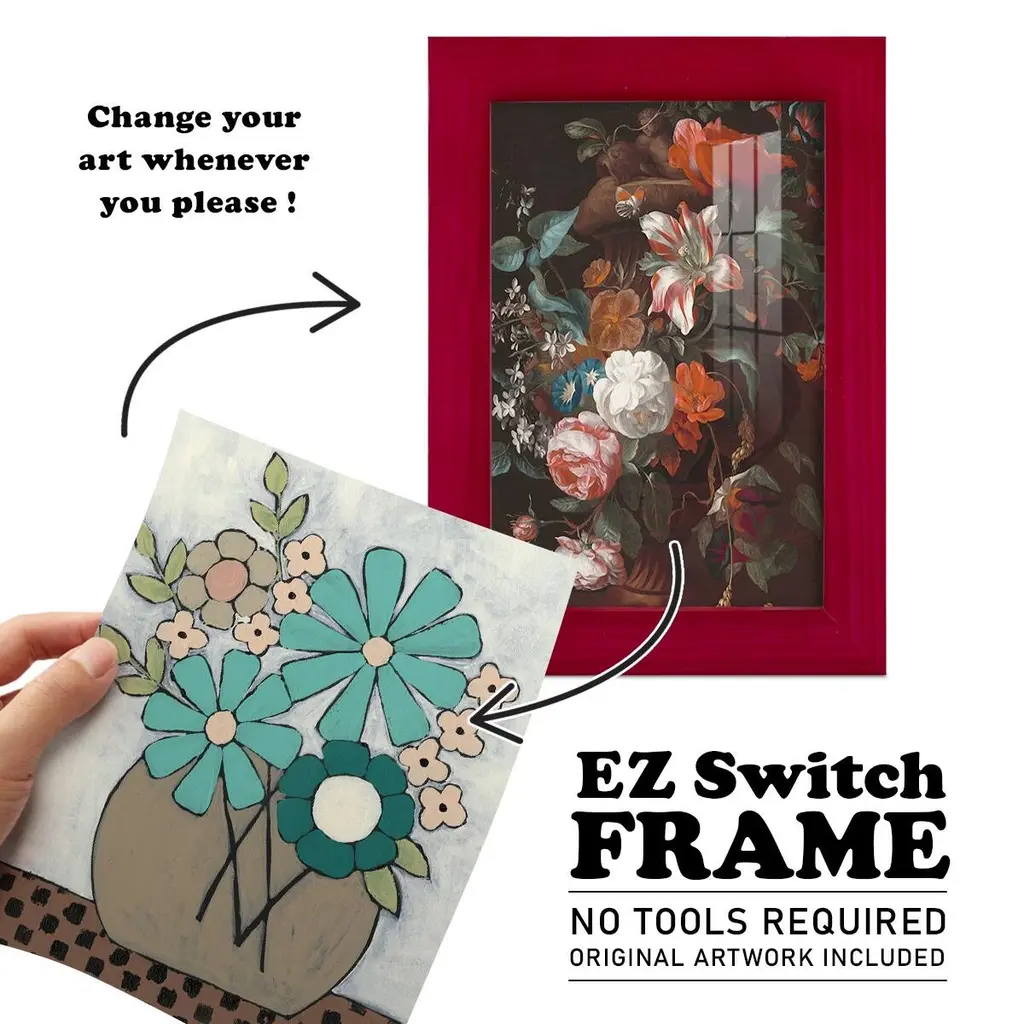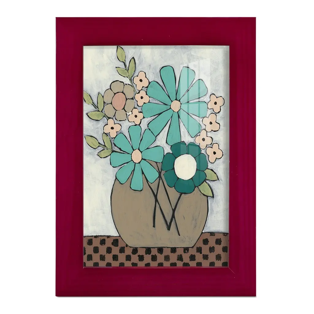 Mid Summer Bouquet II -EZ SWITCH Framed Print w/glass-Cherry Red A delightful, framed print. Featuring a solid wood frame with real wood glass. This premium print is giclee quality. In addition, every frame features a removable back and table top stand. This allows you to change your art in the future or to just stand the art on a table for a new look. We are sure you'll enjoy our new series of EZ SWITCH Framed Art. Solid Wood Frame Real Glass Removable / Replaceable Art Built in Tabletop Stand Sizes range from 4x6 up to 12x15 - buy just one or pair them up as sets as you see fit.