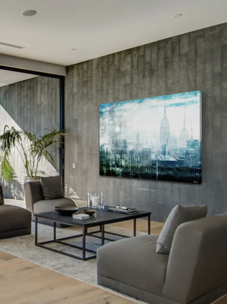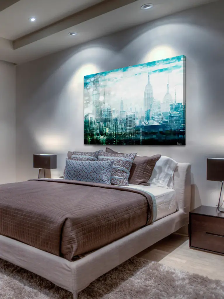 Striking and unique, the "Mid Town" Fine Art Canvas Print by Parvez Taj will bring your walls to life. Printed on canvas, this 36 inch wide by 24 inch tall contemporary artwork will make a statement in any living room, dining room, or bedroom.- Fine art canvas print by Parvez Taj- Professionally hand stretched- Gallery wrapped in sustainable, non-warping wood- Arrives ready to hang- Made in the USA- Includes a certificate of authenticity- Artist signature on the front