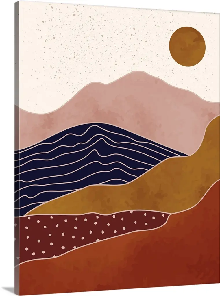 Midcentury Mountain Range Terrain Brown Tan Painting,1pc, Each 11 X 14