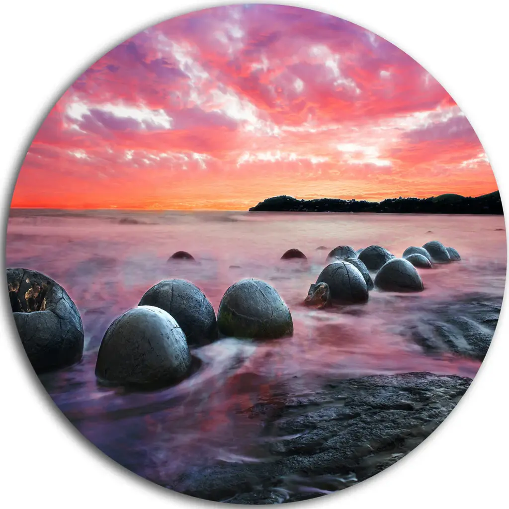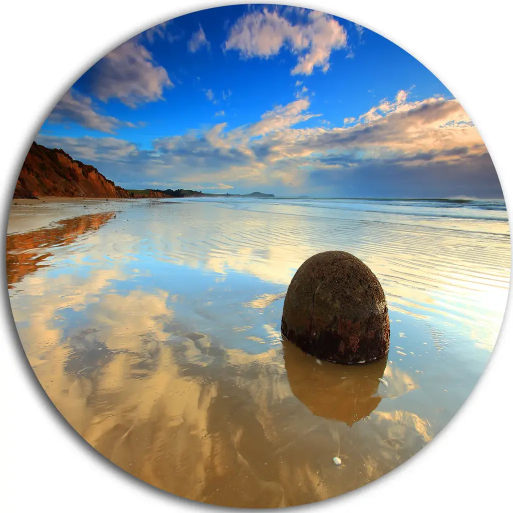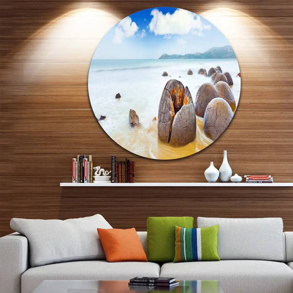 Midday Moeraki Boulders, Seashore Photo Round Metal Wall Art, 38"