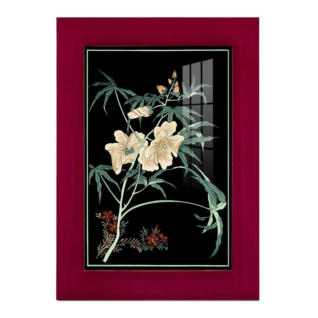 Midnight Floral II -EZ SWITCH Framed Print w/glass-Cherry Red A delightful, framed print. Featuring a solid wood frame with real wood glass. This premium print is giclee quality. In addition, every frame features a removable back and table top stand. This allows you to change your art in the future or to just stand the art on a table for a new look. We are sure you'll enjoy our new series of EZ SWITCH Framed Art. Solid Wood Frame Real Glass Removable / Replaceable Art Built in Tabletop Stand Sizes range from 4x6 up to 12x15 - buy just one or pair them up as sets as you see fit.