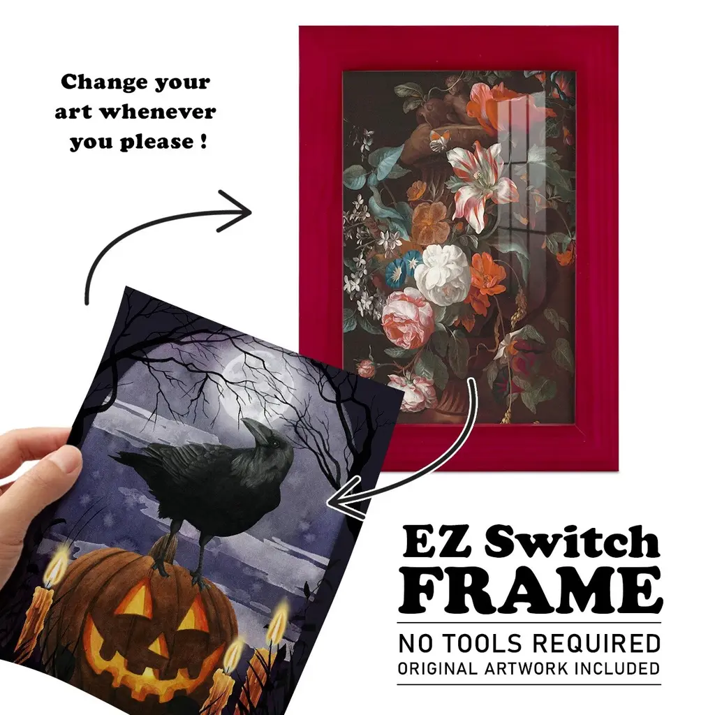 Midnight Magic I -EZ SWITCH Framed Print w/glass-Cherry Red A delightful, framed print. Featuring a solid wood frame with real wood glass. This premium print is giclee quality. In addition, every frame features a removable back and table top stand. This allows you to change your art in the future or to just stand the art on a table for a new look. We are sure you'll enjoy our new series of EZ SWITCH Framed Art. Solid Wood Frame Real Glass Removable / Replaceable Art Built in Tabletop Stand Sizes range from 4x6 up to 12x15 - buy just one or pair them up as sets as you see fit.