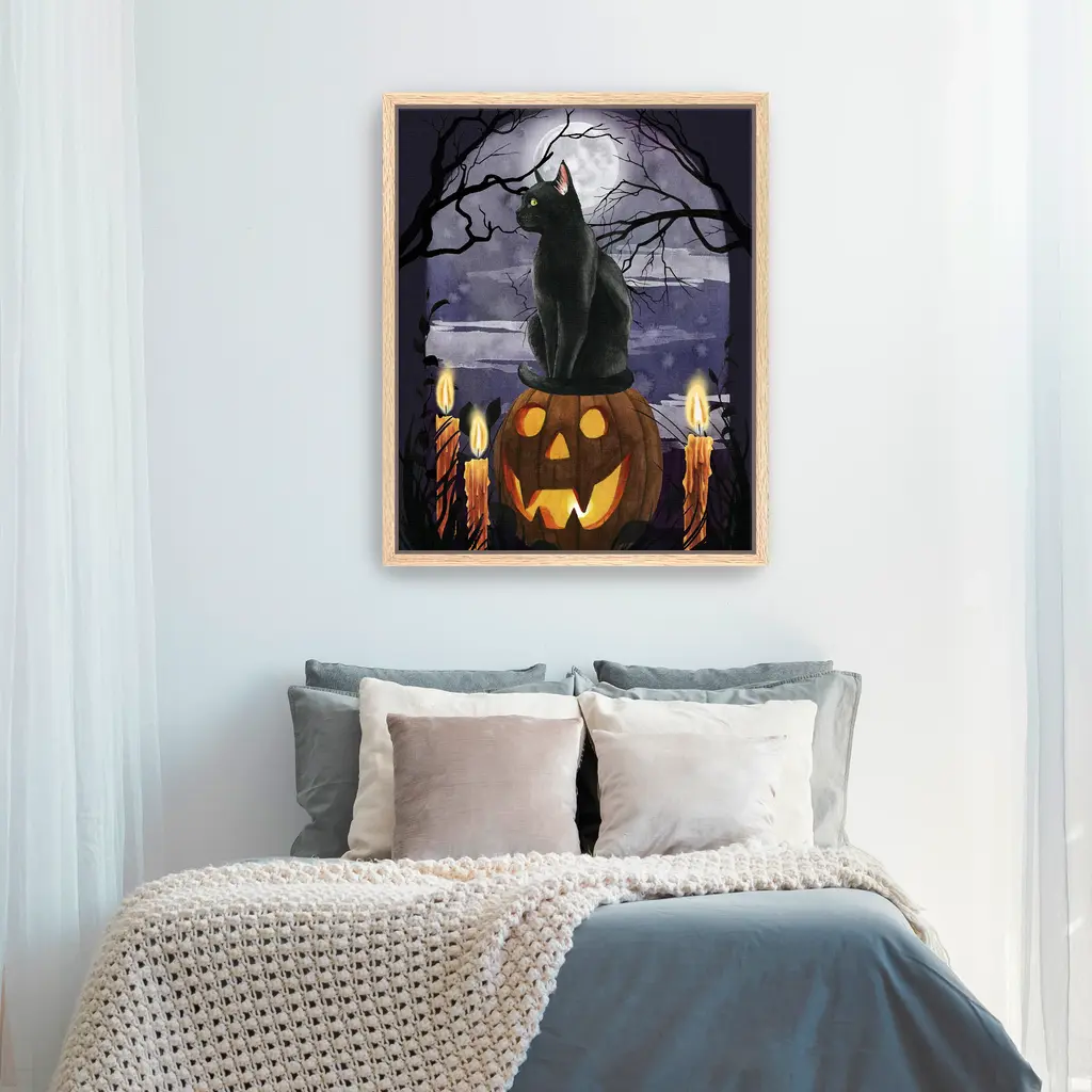 Perched on a jack-o-lantern’s fiery grin, the black cat watches the shadows shift. A festive fusion of feline elegance and spooky delight. Our Gallery Wrap Canvas Prints are proudly assembled with high quality materials in California, USA. Each piece is printed on a thick, archival grade canvas using Giclee technology. It is then hand-stretched by our experienced artisans over solid wood bars, which will not warp over time. The final product is a piece personally crafted for you to confidently display on your wall. Care and Assembly: Ensure that the location of your piece has little to no exposure to heat, sunlight, and moisture. Wipe clean, only if needed. Each piece includes a sawtooth hanger to hang on your wall vertically.