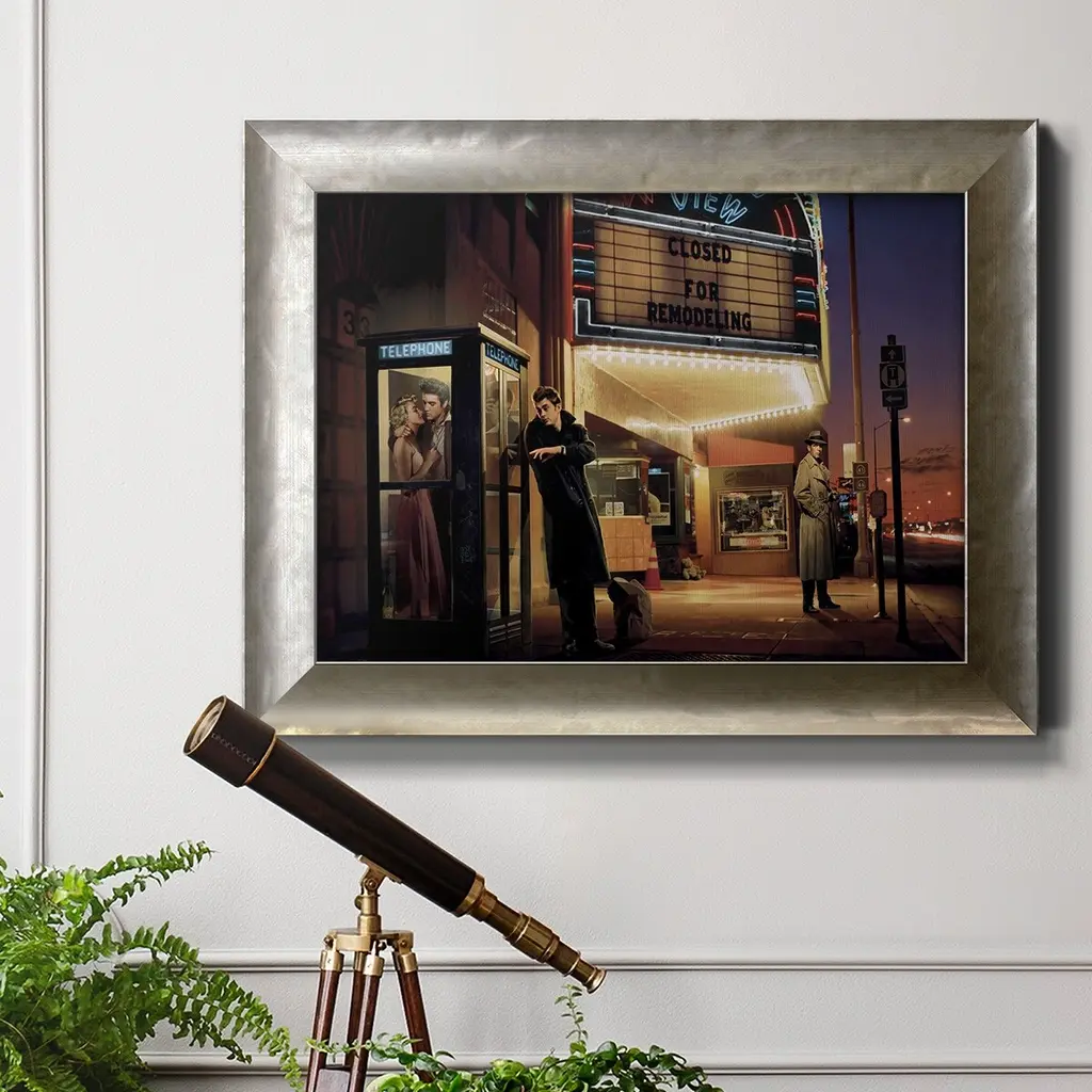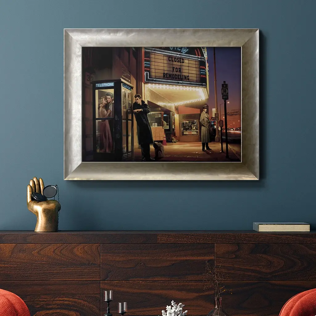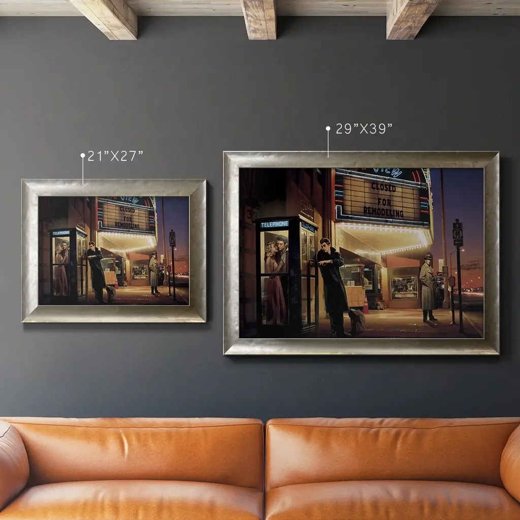 Midnight Matinee Premium Framed Canvas- Ready to Hang A Premium Framed Canvas created to last. Framed in distressed wood and available in an array of sizes and colors Featuring a beveled a solid wood stretcher bar, each piece comes ready to hand 3 SIZES AVAILABLE 16''X20'' - Overall Size 18'X27'' - Overall Size 24''x36'' - Overall Size Each piece is made to order. Each piece comes with hanging hardware. Made in the USA Ready to Hang Giclee Paper Print Acrylic Glass Beveled Matt Board