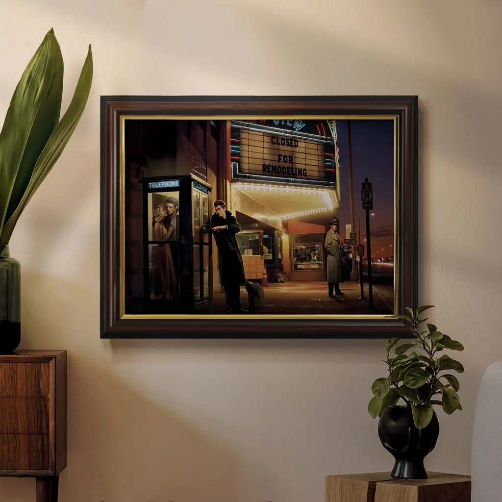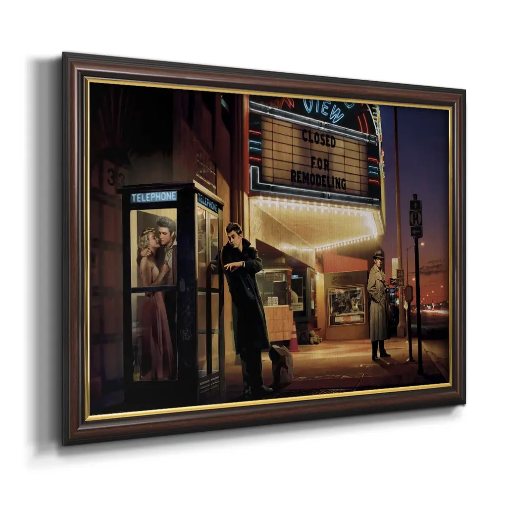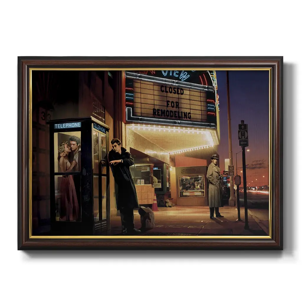 Midnight Matinee Premium Framed Canvas- Ready to Hang A Premium Framed Canvas created to last. Framed in distressed wood and available in an array of sizes and colors Featuring a beveled a solid wood stretcher bar, each piece comes ready to hand 3 SIZES AVAILABLE 16''X20'' - Overall Size 18'X27'' - Overall Size 24''x36'' - Overall Size Each piece is made to order. Each piece comes with hanging hardware. Made in the USA Ready to Hang Giclee Paper Print Acrylic Glass Beveled Matt Board