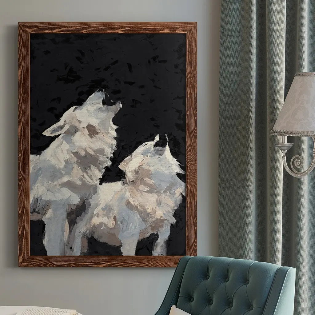 Midnight Wolves-Premium Framed Canvas - Ready To Hang - 31.5x43.5 - Walnut
