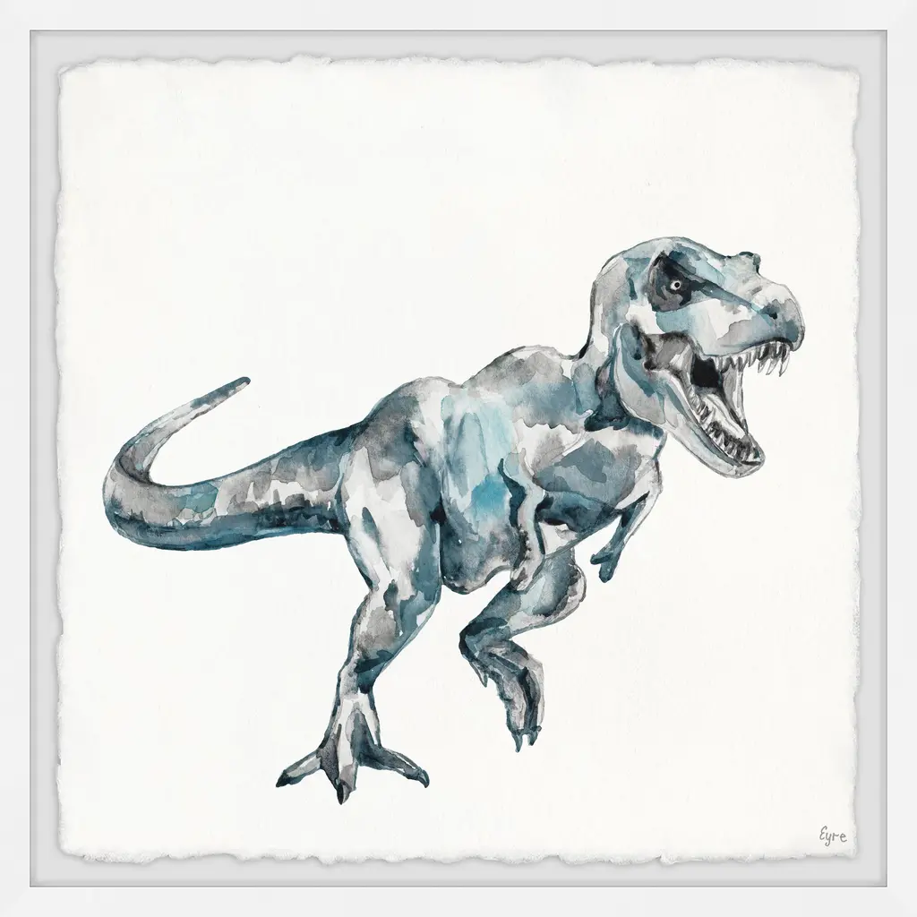 Always majestic the t rex was believed to weigh between 8 and 14 metric tons! Inspire a drive for knowledge with this beautiful print of a mighty t rex in a charge. Proudly printed in the USA, this piece is printed on high quality archive paper and professionally hand-framed. With wall-mounting hooks included, this artful accent is ready to hang up as soon as it reaches your front door. • Top quality Giclee print on high resolution Archive Paper • Artwork by Eyre Tarney • Hand cut deckled edges • High quality durable non-warping frame • Finished under shatter resistant plexiglass • Arrives ready to hang • Includes a certificate of authenticity • Printed in the USA • Artist signature on the front