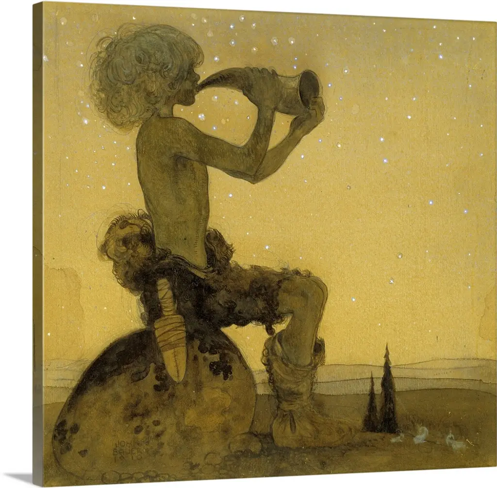 20" x 25" Mikalojus Ciurlionis Sagittarius gallery wrapped premium canvas print reproduced to meet museum quality standards. Our museum quality canvas prints are produced using high-precision print technology for a more accurate reproduction printed on high quality canvas with fade-resistant, archival inks. Our progressive business model allows us to offer works of art to you at the best wholesale pricing, significantly less than art gallery prices, affordable to all. This artwork is gallery wrapped by one of our expert framers, wrapped with 1.5" deep heavy duty wooden stretcher bars, to hang frameless for a high-end designer look. Our gallery wrapped canvas print comes with hardware, ready to hang on your wall. We present a comprehensive collection of exceptional canvas art reproductions by Mikalojus Ciurlionis.