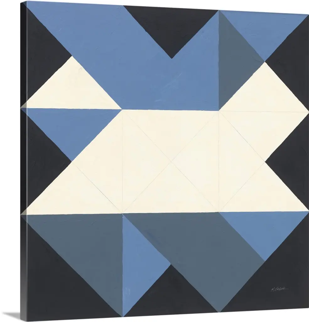 Triangles I by Mike Schick is a high quality piece of canvas artwork. The finished size of this piece is 24" X 24", and it has a depth 1.5" with black painted sides. There is a UV protective coating over the entire image, and it is ready to hang on your wall with no hardware required. 100% Satisfaction Guaranteed.