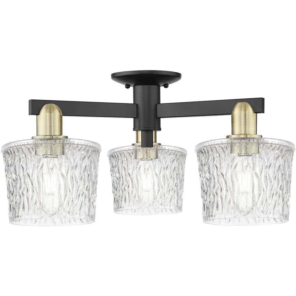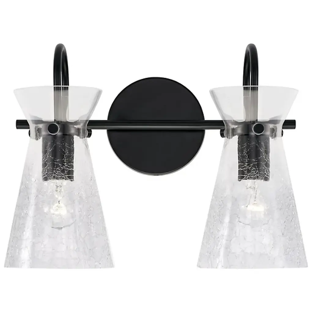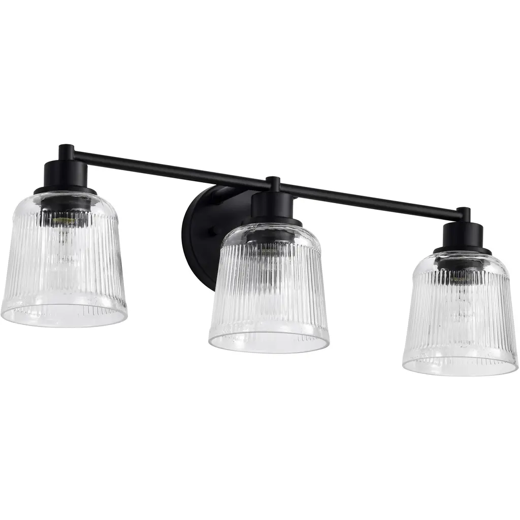 Make a stylish and elegant addition to your bathroom spaces with the Mila Vanity Light from Capital Lighting. Secured to its mounting surface by a steel disc mount, it extends a single crossbar across its horizontal centerline, using a series of U-shaped arms that swoop over and down to suspend a series of damp-listed lamps along its length. Each lamp comes accompanied by a half-crackled glass shade that adds an appealing natural warmth to its surroundings.