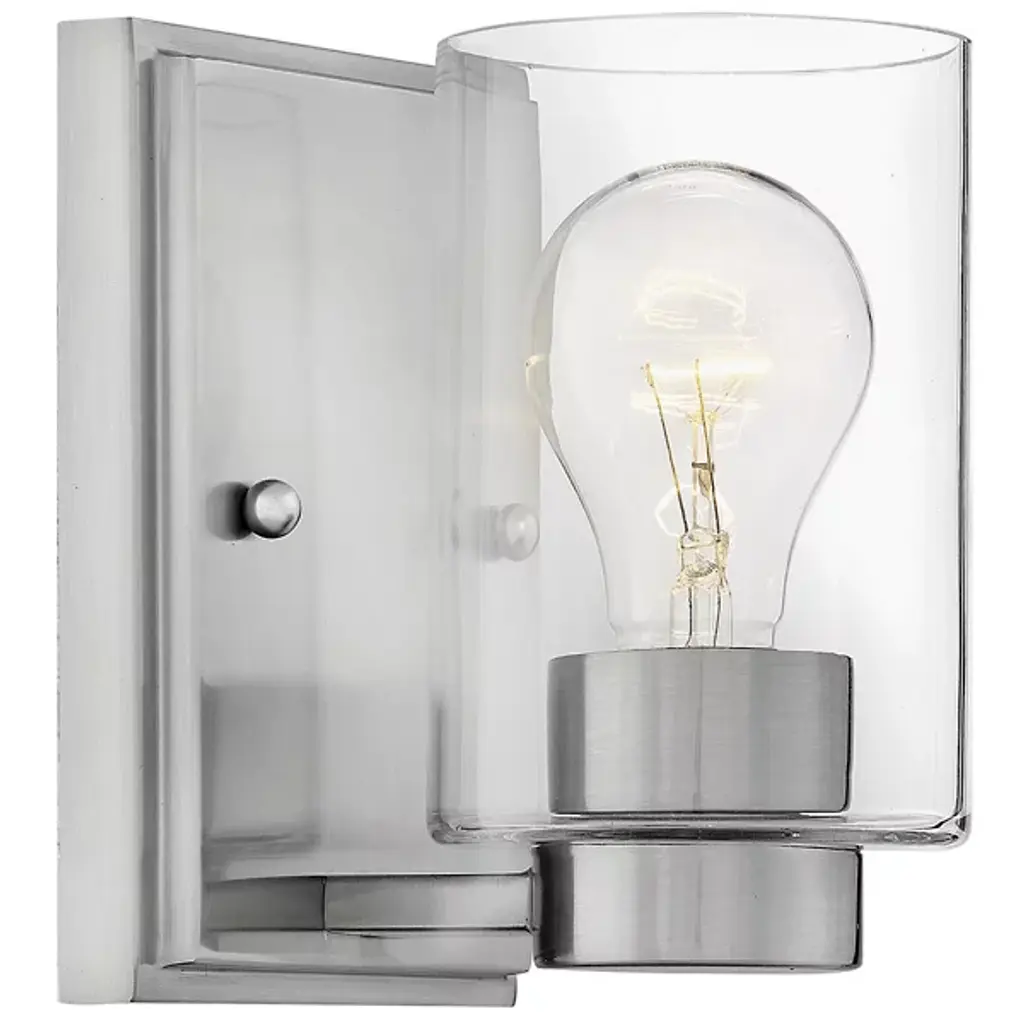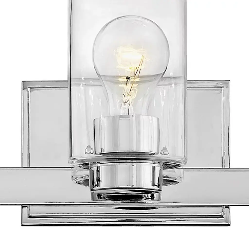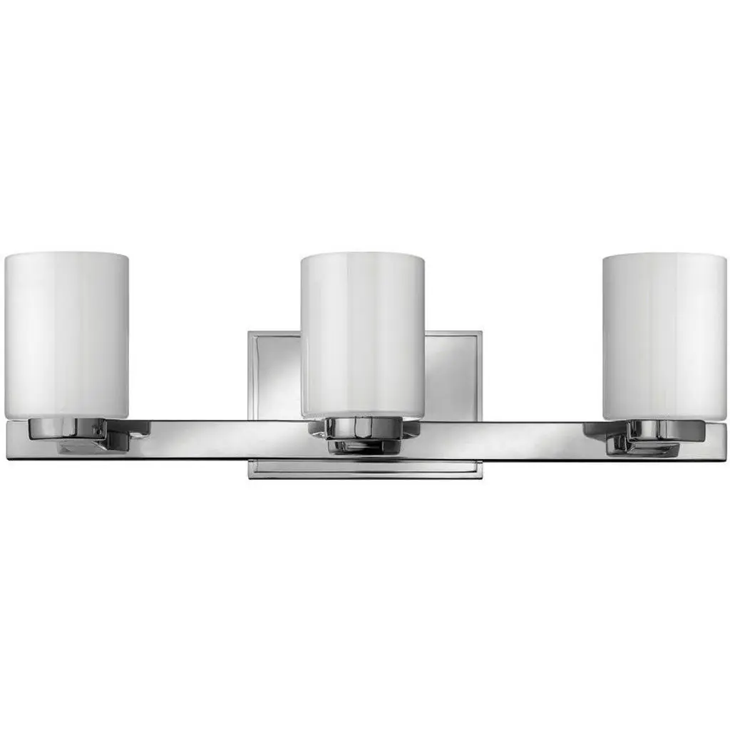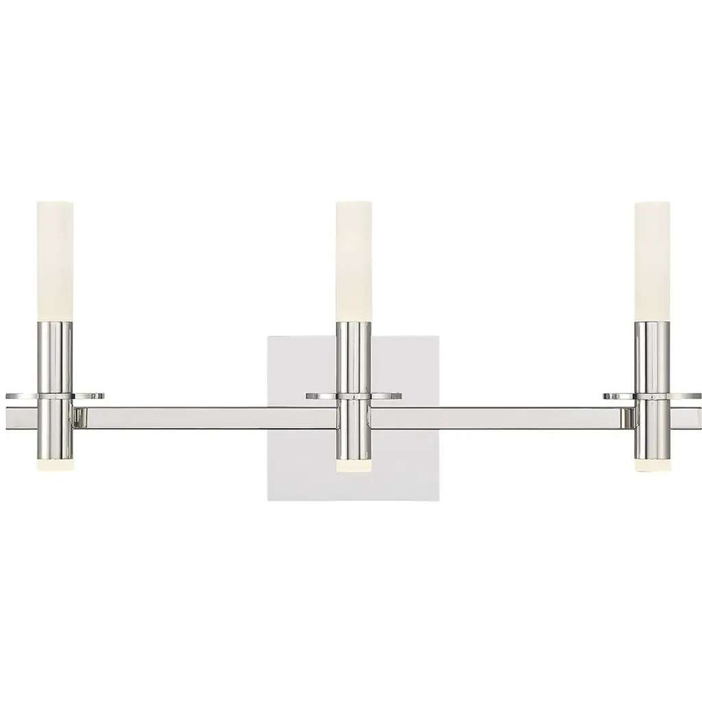 “Compact” and “geometric” would be the keywords in describing the aesthetic of the Miley Vanity Light by Hinkley Lighting. The fixture sports a metallic backplate and arm for high durability while a cased opal glass diffuser slightly protrudes from the plate. The glass diffuser, shaped like a candle, holds the internal lamping and allows it to produce a soft, textured style of light. The result is a comforting aura that’s much needed for bathroom spaces.