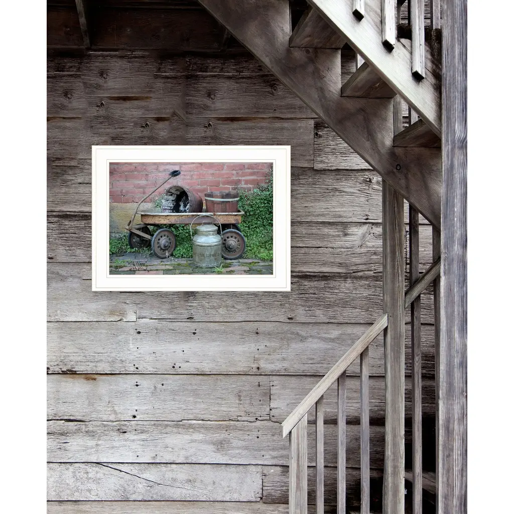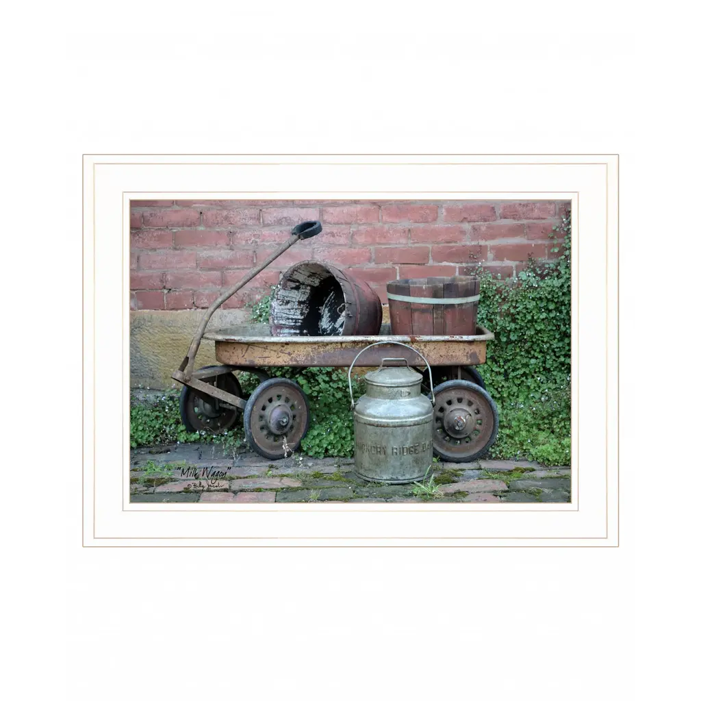 This milk wagon 2 white framed print wall art will add a beautiful decorative accent to your decor. This print is a visual artistic expression that allows you to decorate your space in style. Reproduced for you on wood, this hanging decorative accent will be a trendy and fashionable way to dress your walls in a rustic and modern farmhouse vibe. Adding this hanging wall art to your space to make your room feel more finished and attractive. Instantly liven up your space with this art that brings color and dimension to your walls. 15" H x 21" W x 1" D