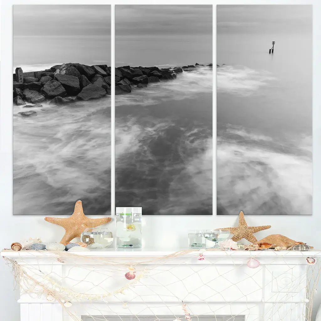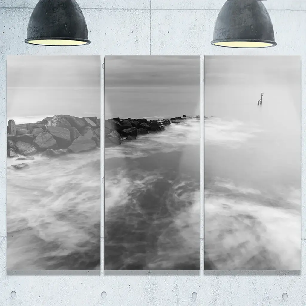 "Milky Waves Splashing Over Rocks" Metal Wall Art, 3 Panels, 36"x28"