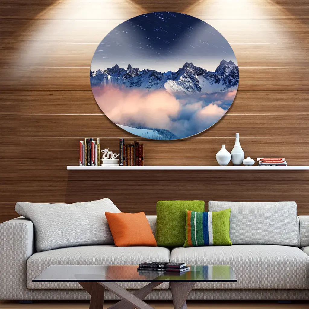 Milky Way Over Frosted Mountains, Landscape Round Metal Wall Art, 36"