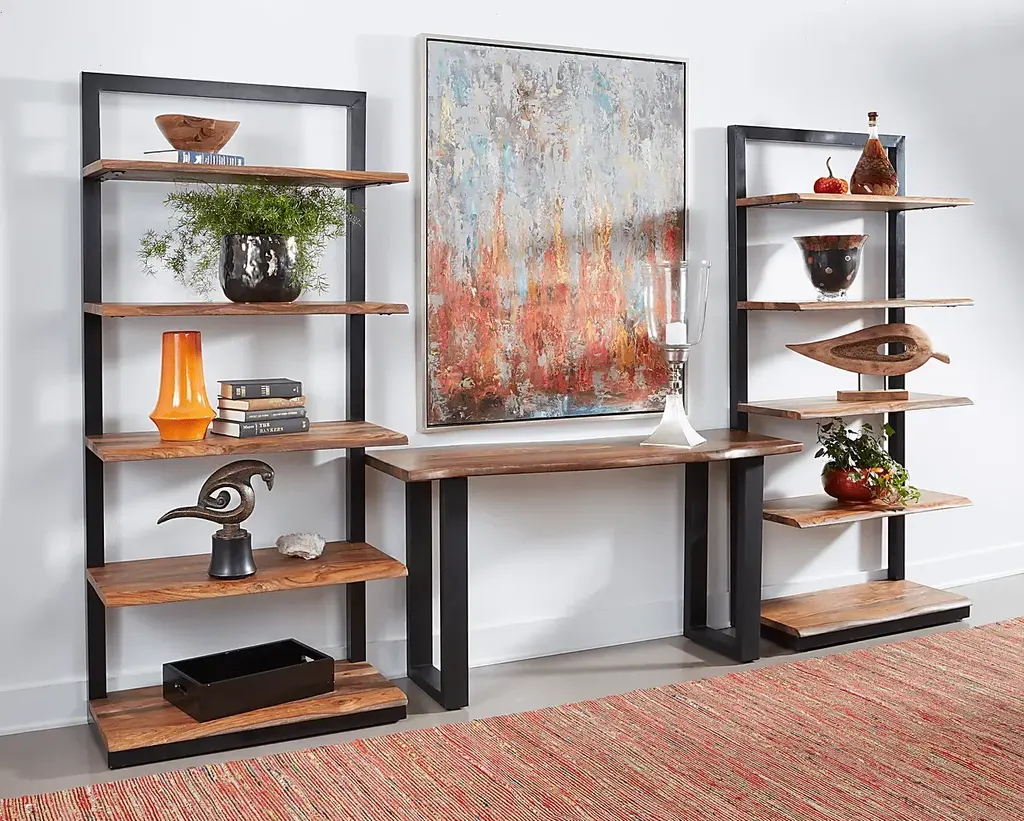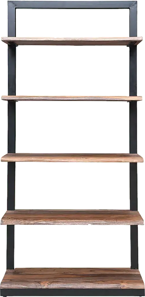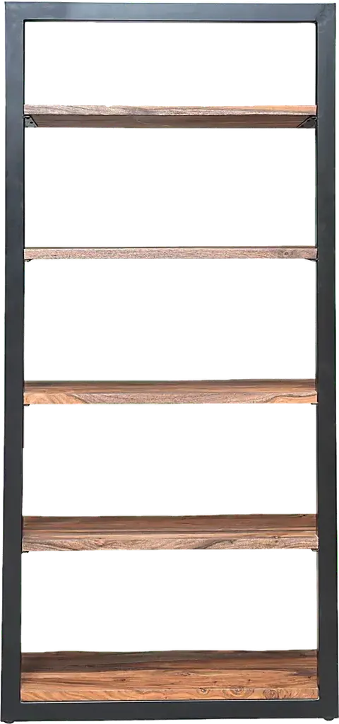 Beautiful in it's simplicity, this Millvale bookcase has an open look with an understated elegance. A tall metal framework finished in a black powder coating rises up and holds five full shelves of exotic Sheesham wood, with gently curving live edges and exquisite graining that gleams in a nut brown stain. A wonderful way to display your collections, books and artwork. Customer assembly is required.