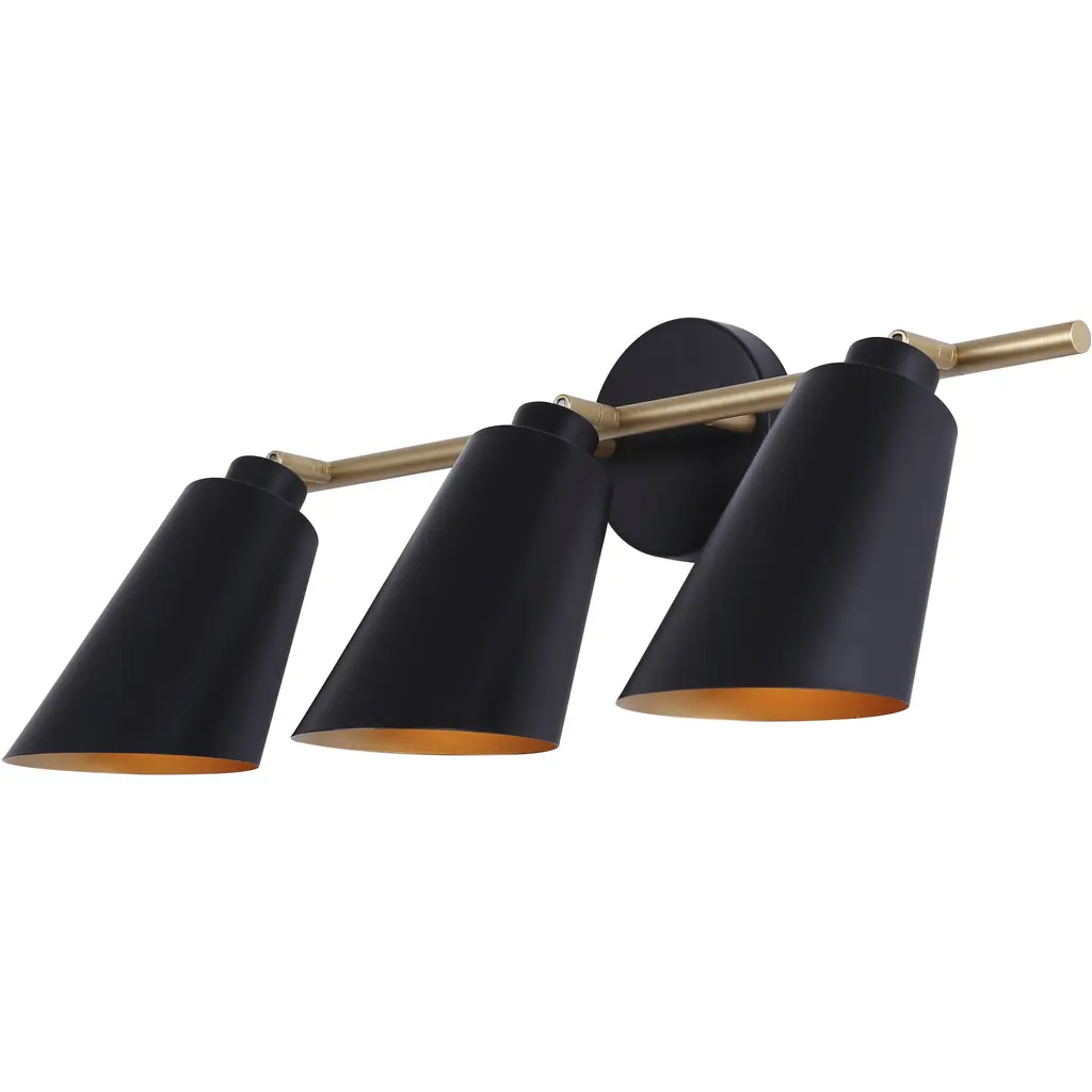 The Mimi Vanity Light by Huxe has a modern, minimal look that is at home with a range of décor styles and in a variety of spaces. Anchored by a smooth, rectangular backplate, a simple, sleek bar extends to support a conical shade that casts an even layer of illumination down onto surroundings. A handsome mix of finishes adds a tailored touch to this wall sconce as it accents the room it is in.