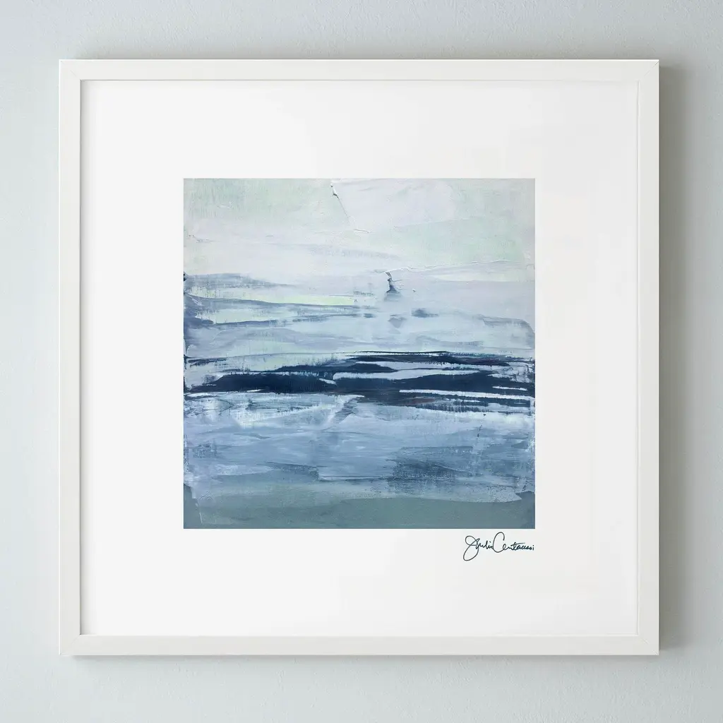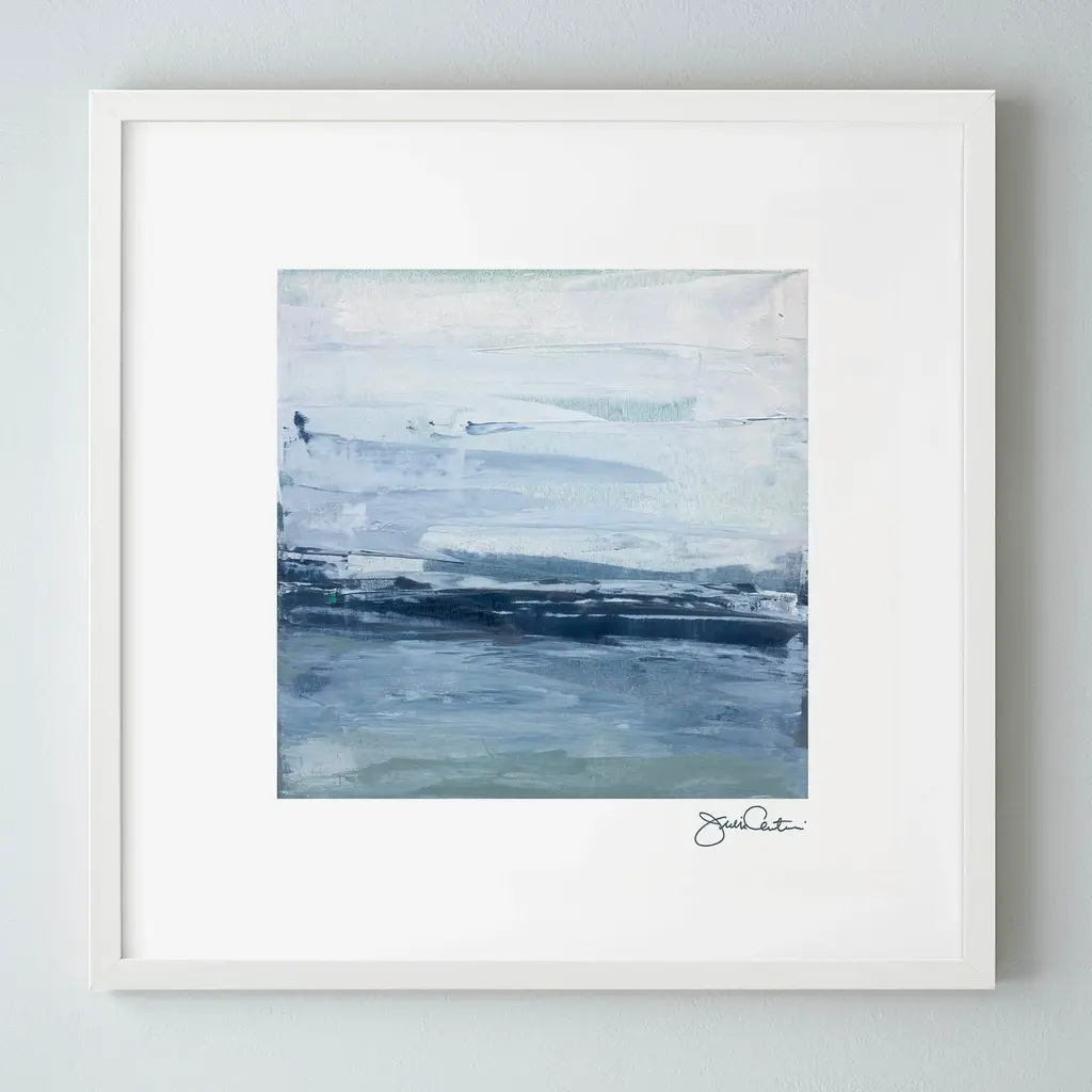 A fluid horizontal composition and light hearted abstraction combine to create this coastal print set by artist Julia Contacessi. Set of 2 archival fine art prints, each is finished in a white frame. Artist signature in the lower right corner. Wired and ready to hang. Print Details: • Each Art Size: 12" W x 12" H • Each Frame Size: 20.25" W x 20.25" H • Set of 2