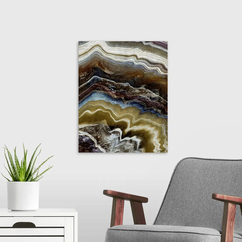 Abstract painting resembling a close up of mineral agate layers.