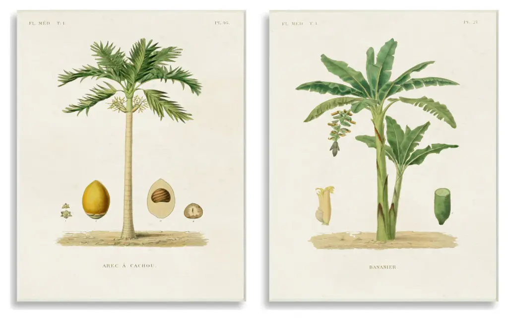 Minimal Green Palm Tree Coconuts Diagram Illustration, 2Pc, Each 11 X 14