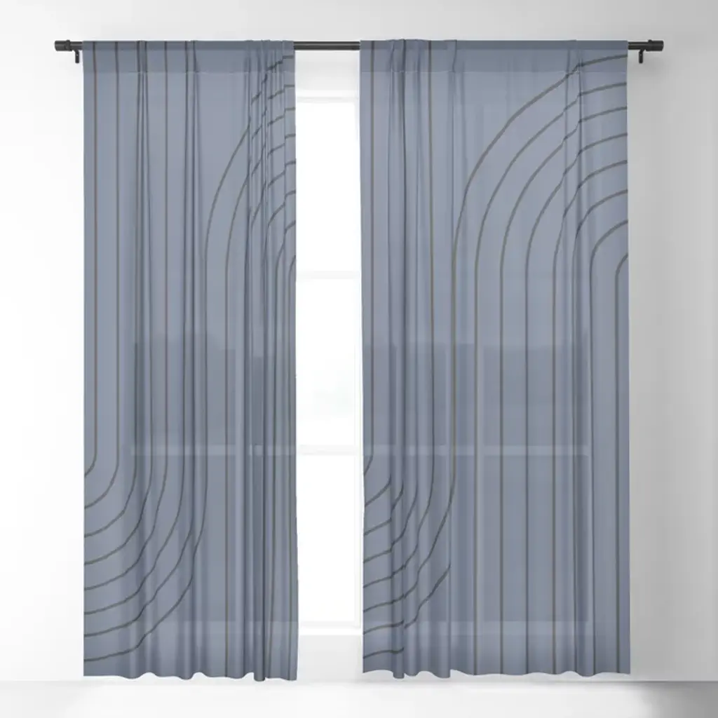 Minimal Line Curvature Iv Navy Blue Mid Century Modern Arch Abstract Curtain
