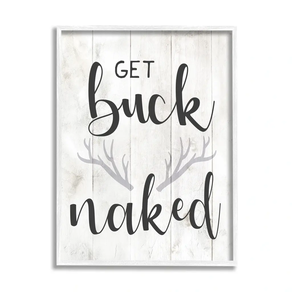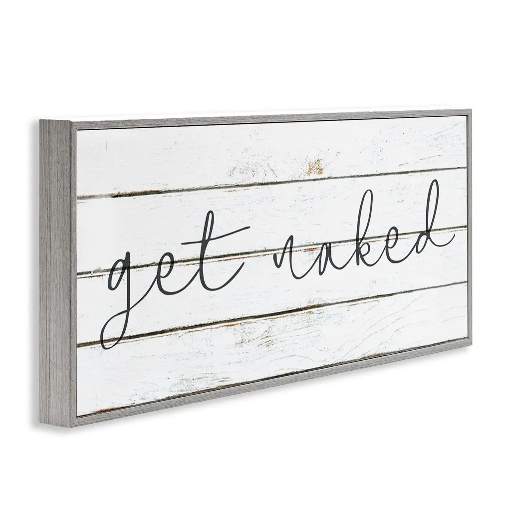 Minimal White Planked Look Get Naked Script Typography Framed Wall Art - 13 X 30 - Wood - White