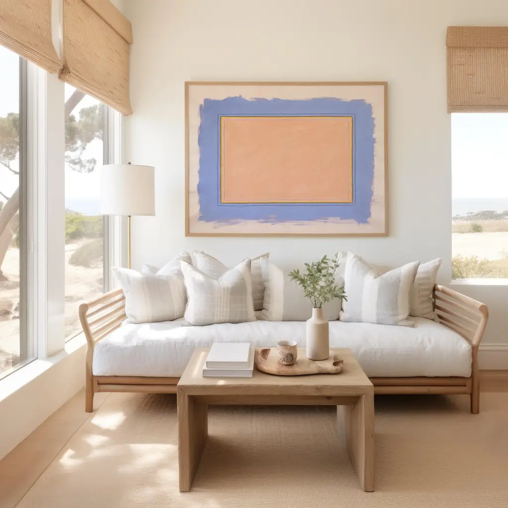 Minimalist Abstract Fine Art Print, Blush Pink & Cornflower Blue, 30 X 38 Print In Wood Frame