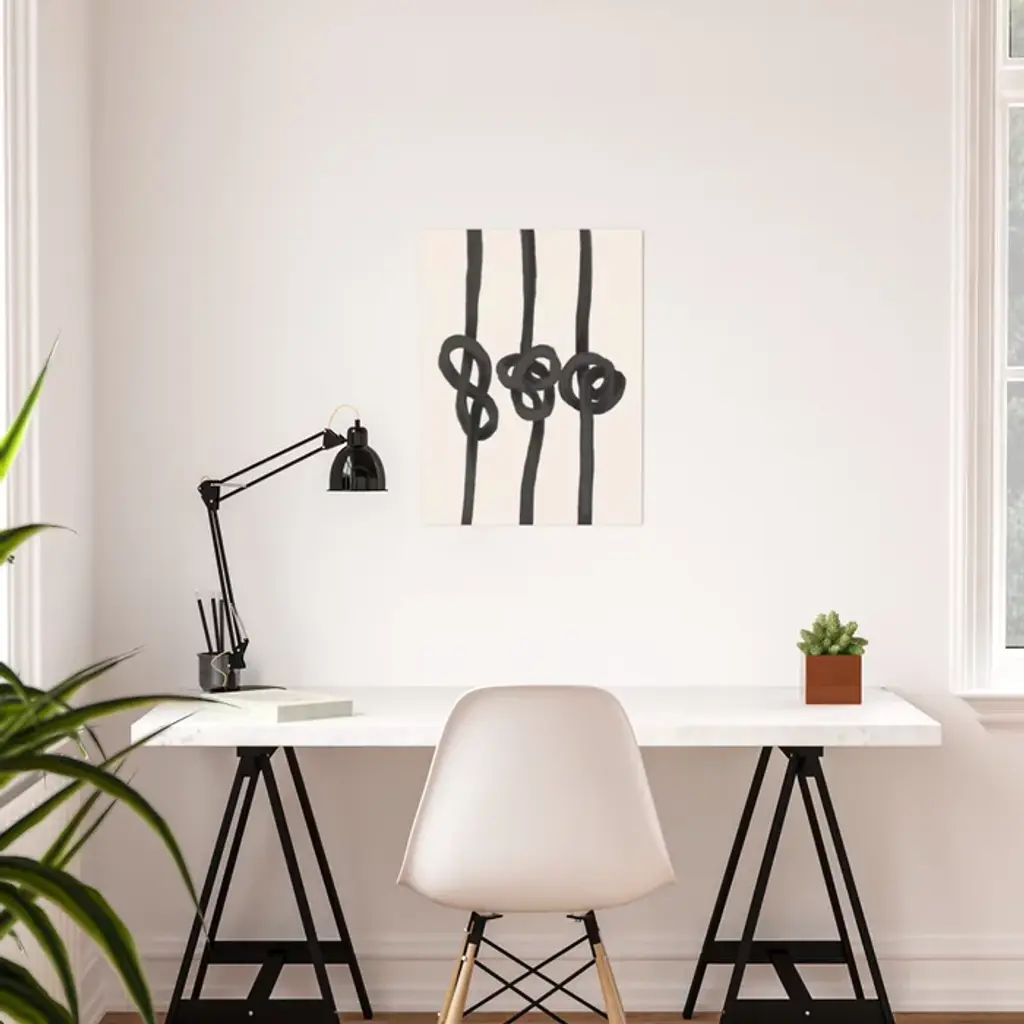 Minimalist Black Knot Abstract Art On Neutral Background Poster