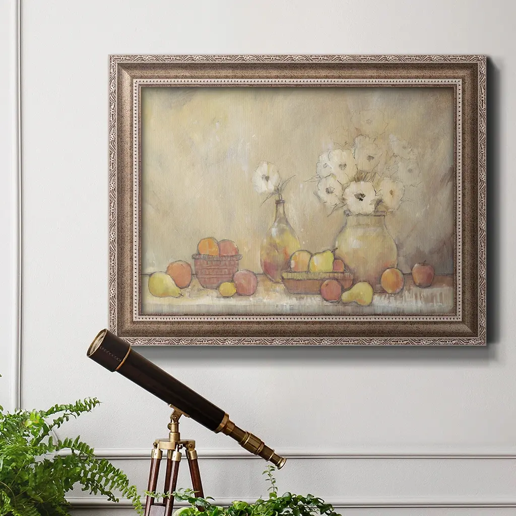 Minimalist Still Life Study I Premium Framed Canvas- Ready to Hang A Premium Framed Canvas created to last. Framed in distressed wood and available in an array of sizes and colors Featuring a beveled a solid wood stretcher bar, each piece comes ready to hand 3 SIZES AVAILABLE 16''X20'' - Overall Size 18'X27'' - Overall Size 24''x36'' - Overall Size Each piece is made to order. Each piece comes with hanging hardware. Made in the USA Ready to Hang Giclee Paper Print Acrylic Glass Beveled Matt Board