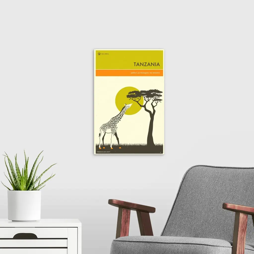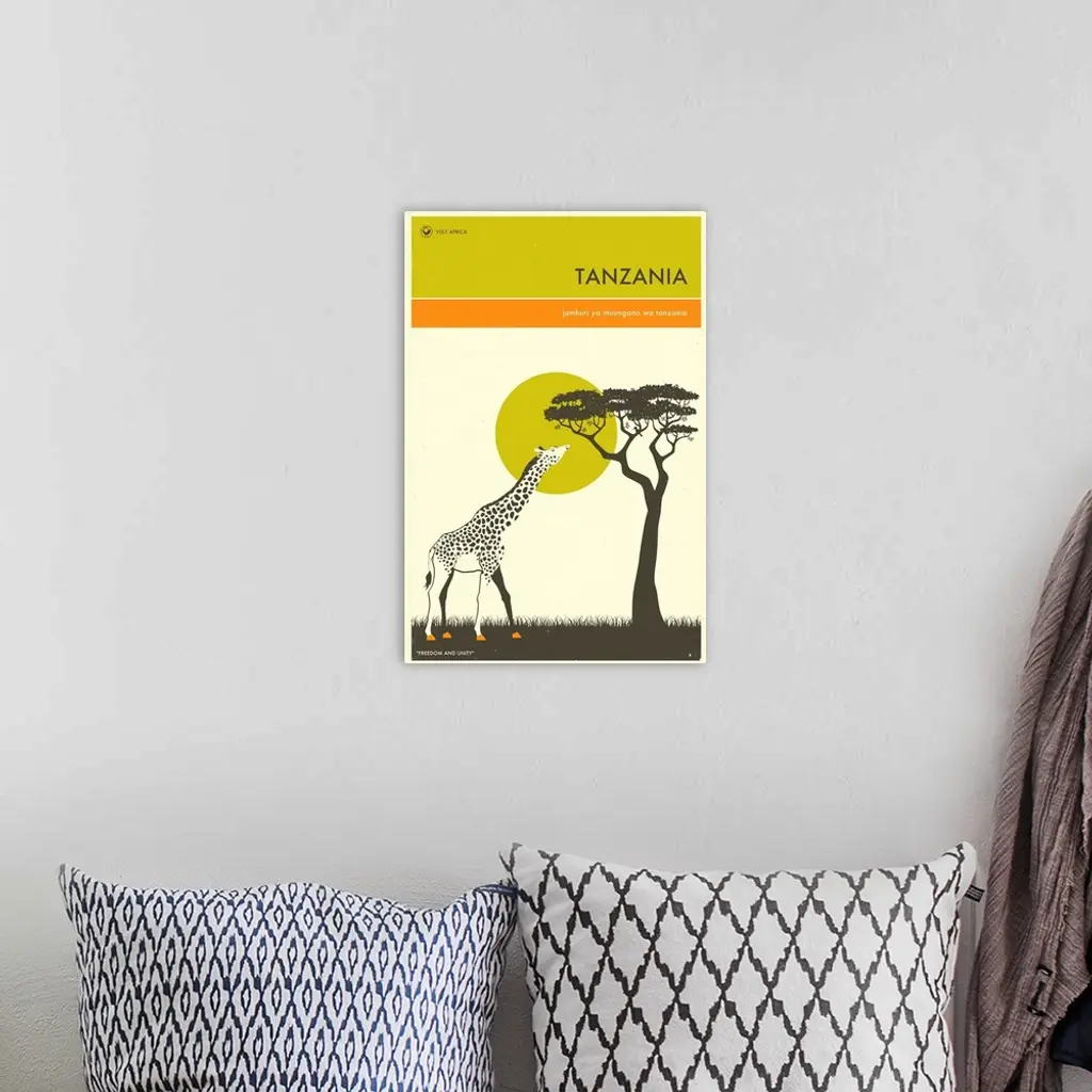 Minimalist retro style Visit Africa travel poster for Tanzania.