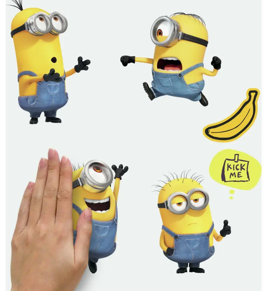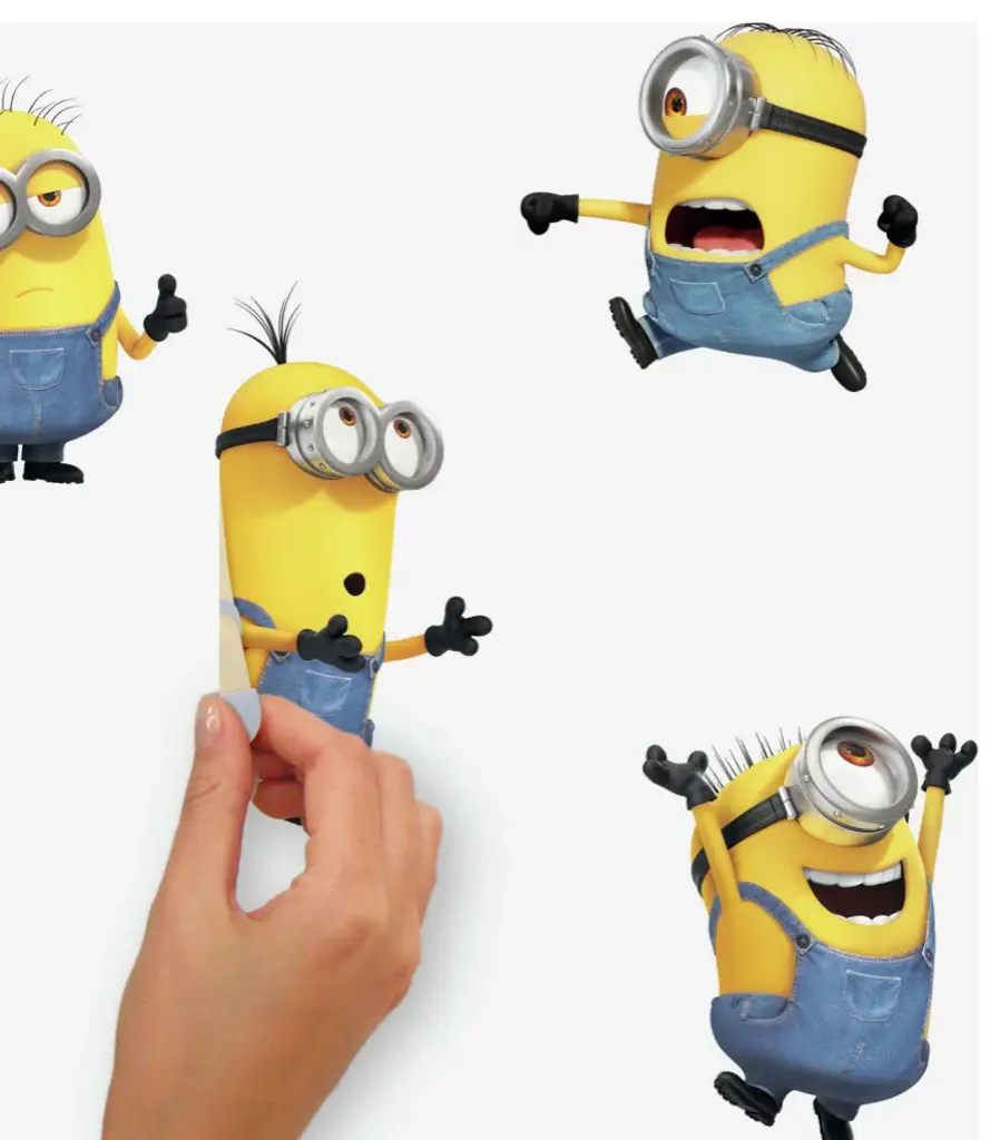 Add favorite characters to your space with Minions 2 Peel and Stick Wall Decals by RoomMates. This wall sticker set is a fun and creative way to transform any room in seconds. To apply, simply peel and stick decals to any smooth, flat surface. Remove, reposition and reuse as often as needed. Created with high quality vinyl that''s made to last, walls stay completely safe, and sticky residue is never left behind. It''s fast, fun and affordable wall decor at it''s best. Includes 30 decals size(s) - 2.87 inches X 1.47 inches to 3.63 inches X 16.57 inches. 4 Sheets 9 inches x 17.375 inches.